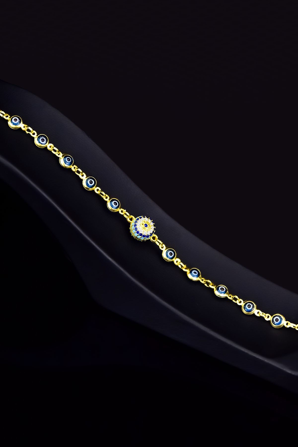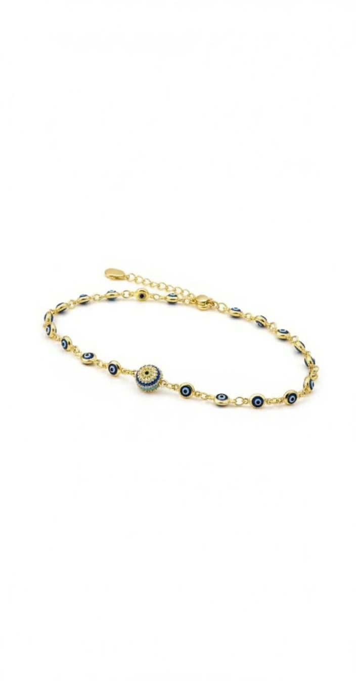 Maden: 925 Ayar Gümüş. Kaplama: Gold. Zincir Uzunluğu: 18 cm. Taş: Cam Göz. Ürün Ağırlığı: 3,29 Gr ( +-). Göz En*Boy: 6 mm. Gümüş ve değerli taşlar nedeniyle belirtilen ortalama ürün ağırlığında ± %5 sapma olabilmektedir. Teslimat: Ürün ahşap hediye kutusunda gönderilecektir. Kullanım: Parfüm, dezenfektan, çamaşır suyu gibi kimyasallardan uzak tutunuz.