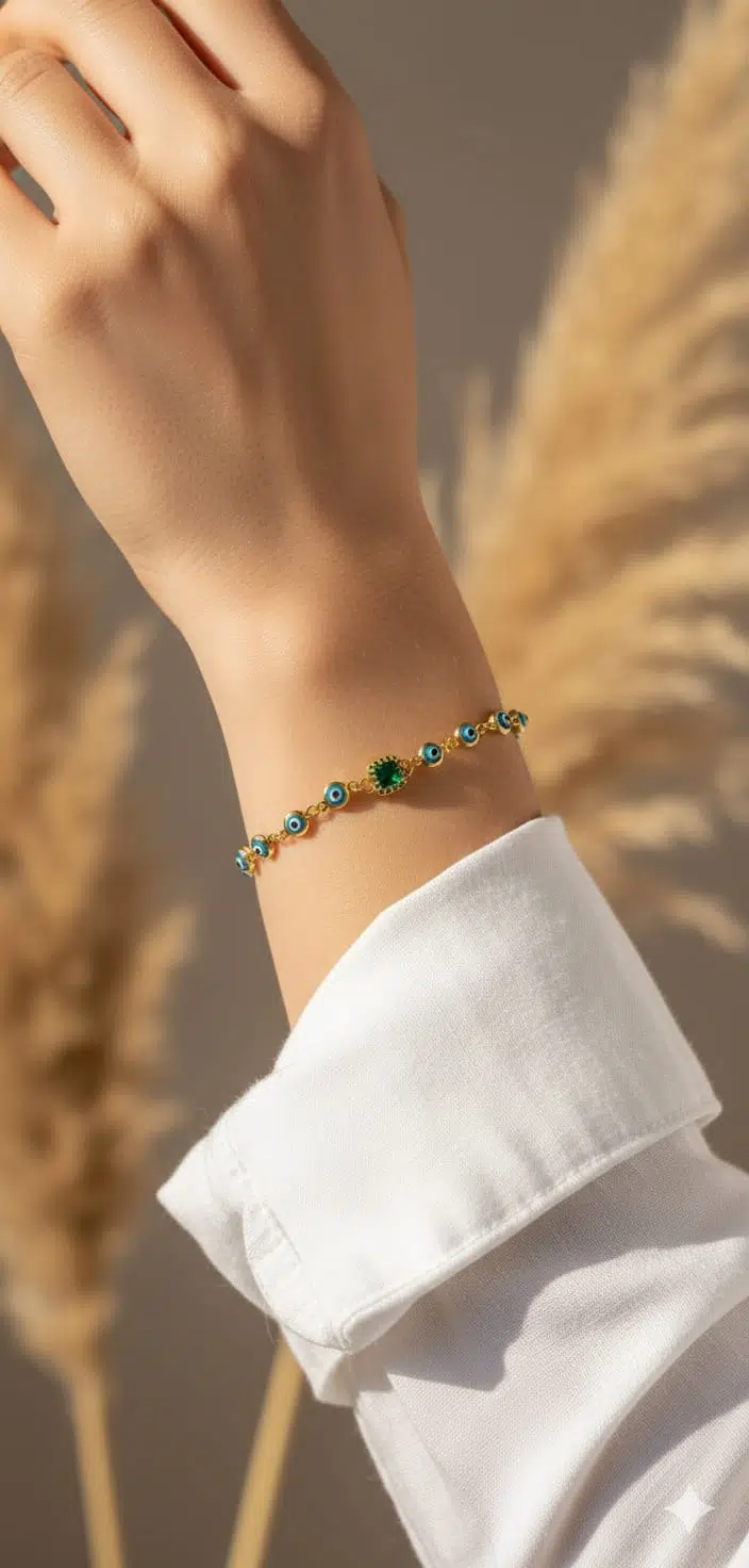 Maden Ayar: 925 Ayar Gümüş. Maden Kaplama: Gold . Bileklik: 18 cm. Ürün Ağırlığı:2,71 cm. ''Gümüş ürünlerin yapısı gereği kararmalar meydana gelebilir daha uzun ömürlü olması için; Parfüm gibi kozmetik ürünlere direkt temas etmediği sürece ürün ömrü daha uzun olacaktır.''