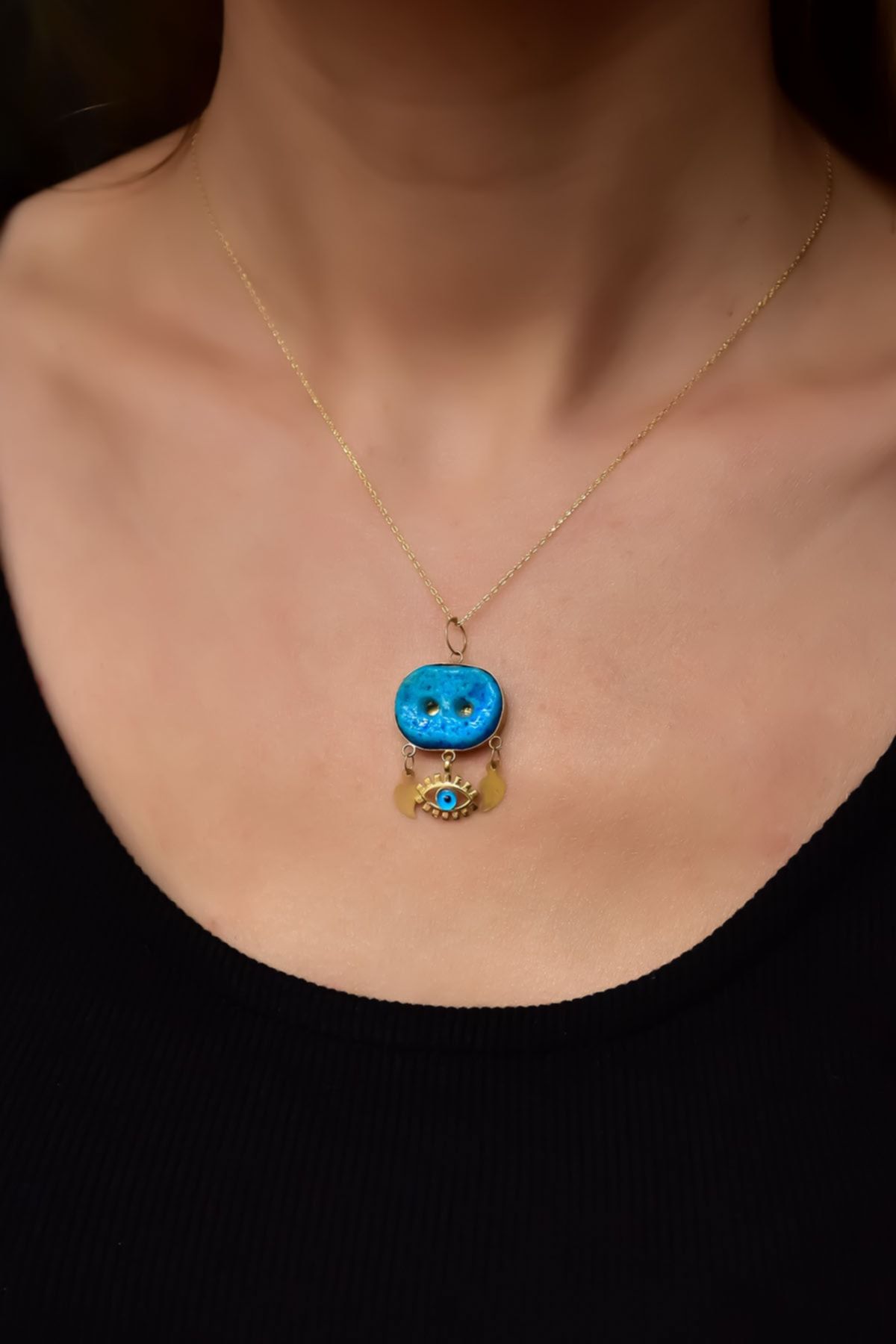 Maden : 925 Ayar Gümüş. Kaplama: Gold. En*Boy:1,7*1,8 cm. Kolye Uzunluğu: 42 cm. Kolye Ağırlığı : 3,46 Gr ( +-) Gümüş ve değerli taşlar nedeniyle belirtilen ortalama ürün ağırlığında ± %5 sapma olabilmektedir. Teslimat: Ürün ahşap hediye kutusunda gönderilecektir. Kullanım: Parfüm, dezenfektan, çamaşır suyu gibi kimyasallardan uzak tutunuz.