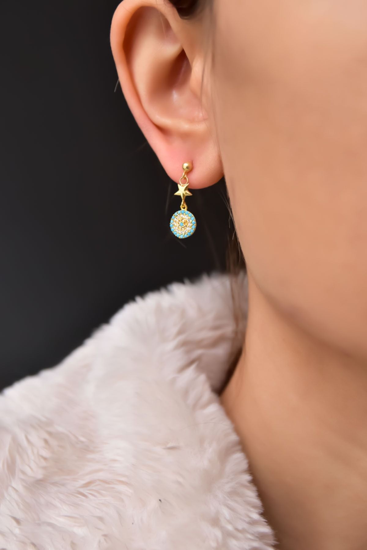 Maden : 925 Ayar Gümüş. Kaplama: Gold Figür En*Boy: 7 mm. Ürün Ağırlığı : 1,61 Gr. ( +-). Gümüş ve değerli taşlar nedeniyle belirtilen ortalama ürün ağırlığında ± %5 sapma olabilmektedir. Teslimat: Ürün ahşap hediye kutusunda gönderilecektir. Kullanım: Parfüm, dezenfektan, çamaşır suyu gibi kimyasallardan uzak tutunuz.
