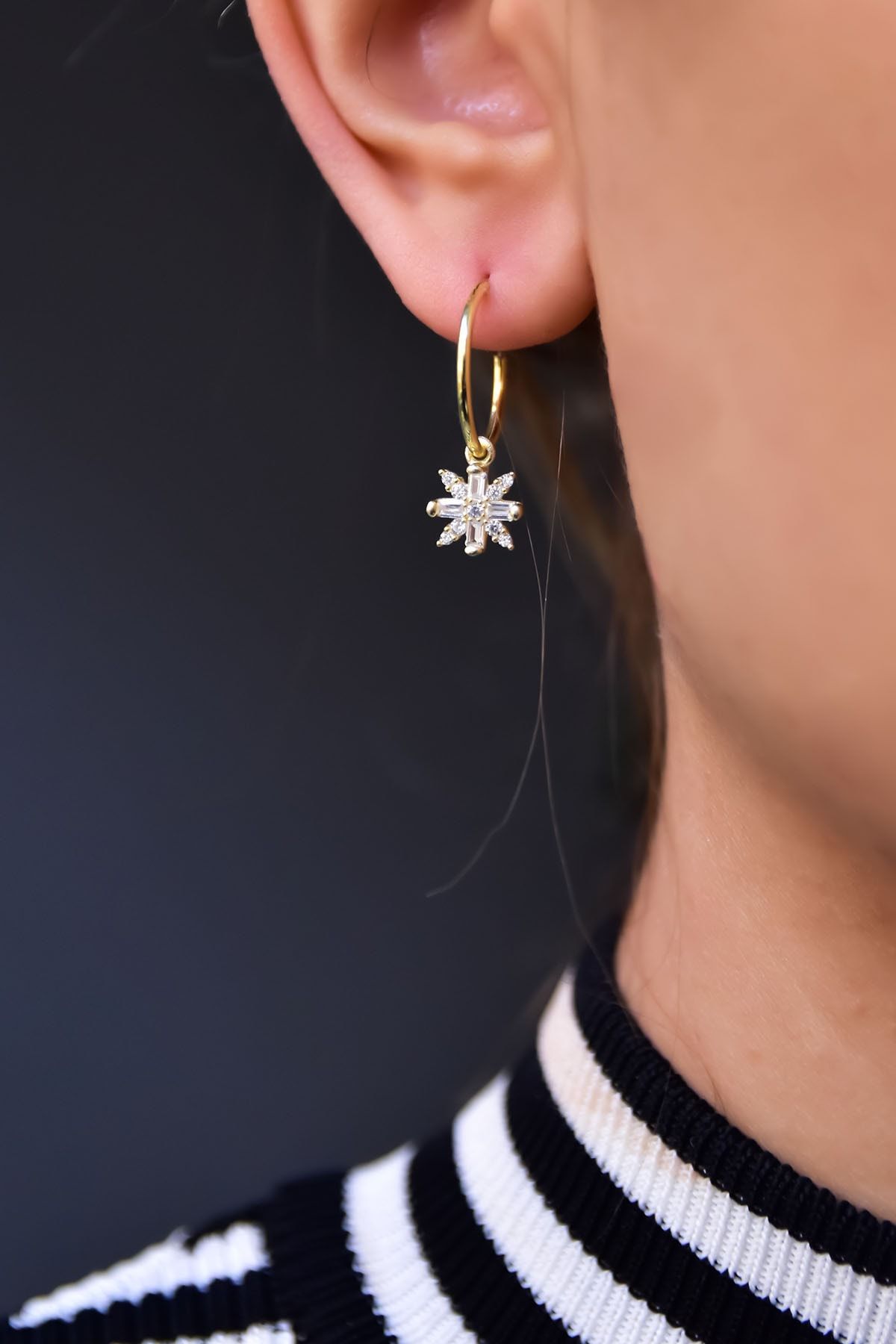 Maden : 925 Ayar Gümüş. Kaplama: Gold . Figür : 7 mm. Çap: 1,3 cm. Taş: Zirkon. Ürün Ağırlığı : 1,55 Gr ( +-). Ürün çift gönderilmektedir. Gümüş ve değerli taşlar nedeniyle belirtilen ortalama ürün ağırlığında ± %5 sapma olabilmektedir. Teslimat: Ürün ahşap hediye kutusunda gönderilecektir. Kullanım: Parfüm, dezenfektan, çamaşır suyu gibi kimyasallardan uzak tutunuz.