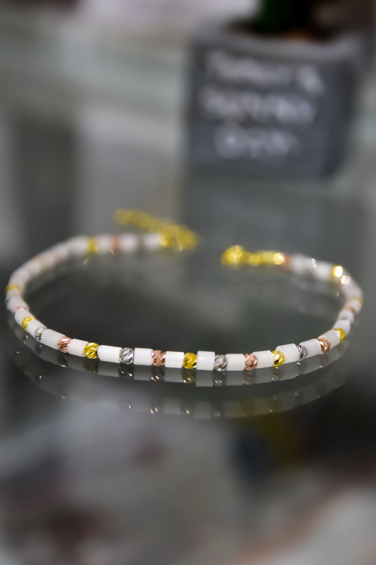 Maden Ayar: 925 Ayar Gümüş. Maden Rengi: Gold. Zincir boyu:18 cm. Bileklik Ağırlığı: 2,38 gr. Teslimat: Ürün kutu ile gönderilecektir. ''Gümüş ürünlerin yapısı gereği kararmalar meydana gelebilir daha uzun ömürlü olması için; Parfüm gibi kozmetik ürünlere direkt temas etmediği sürece ürün ömrü daha uzun olacaktır.''