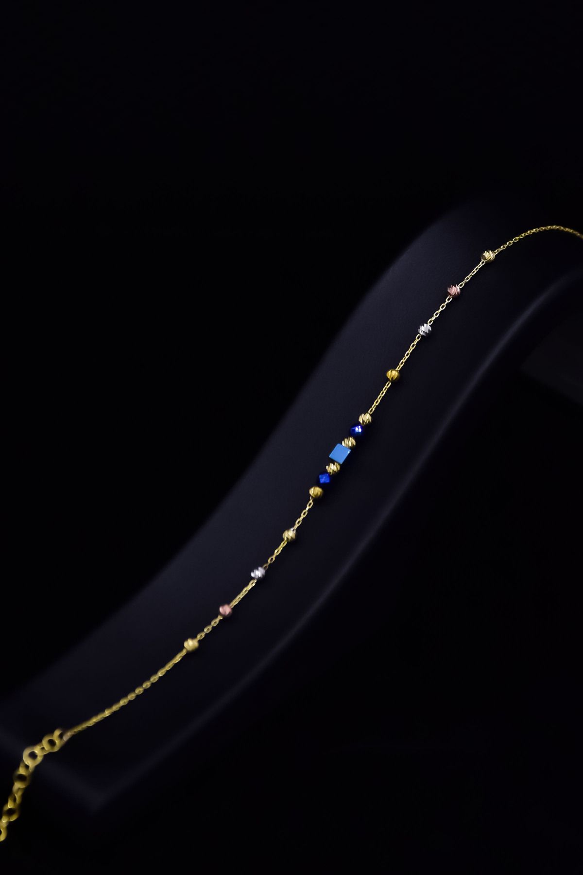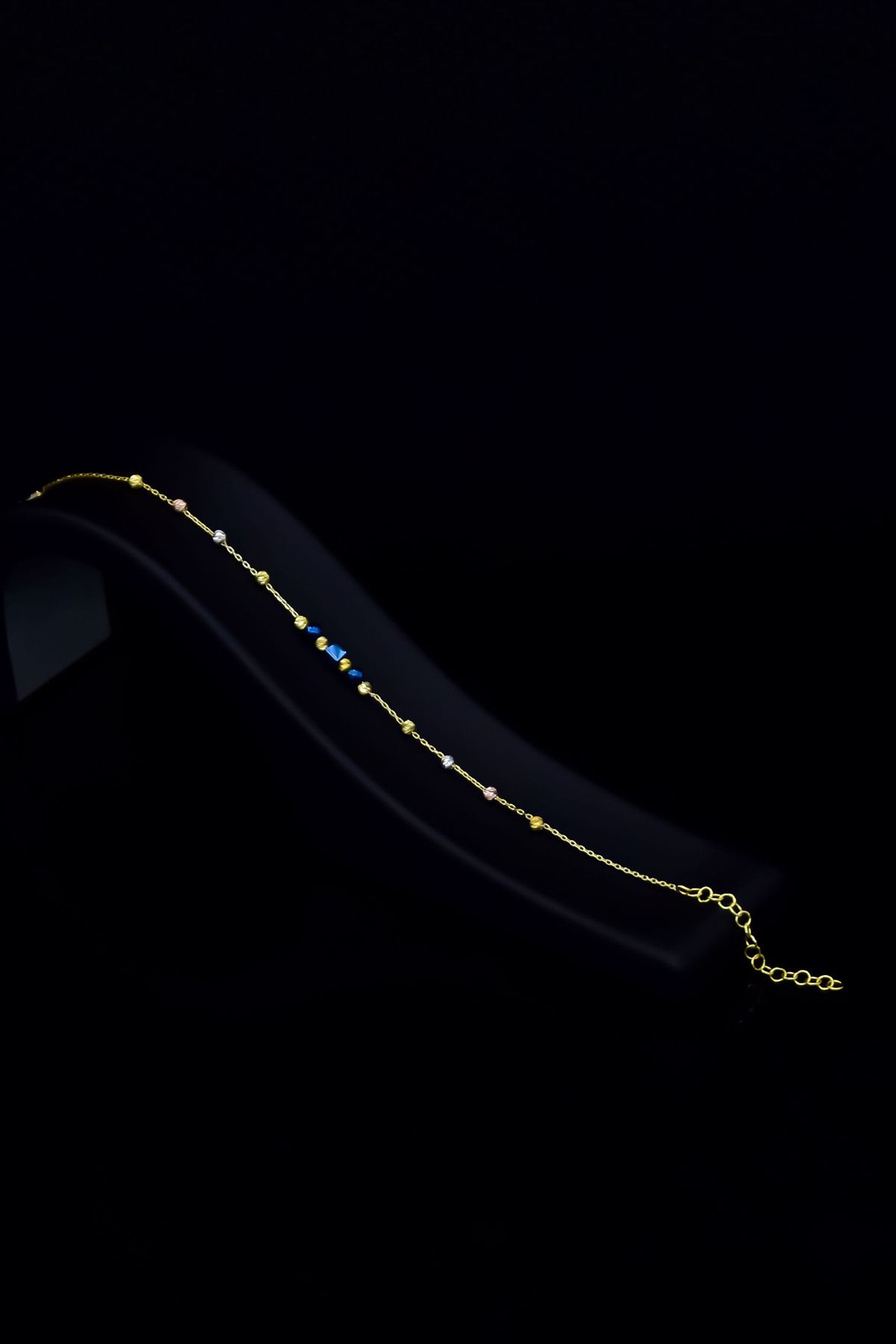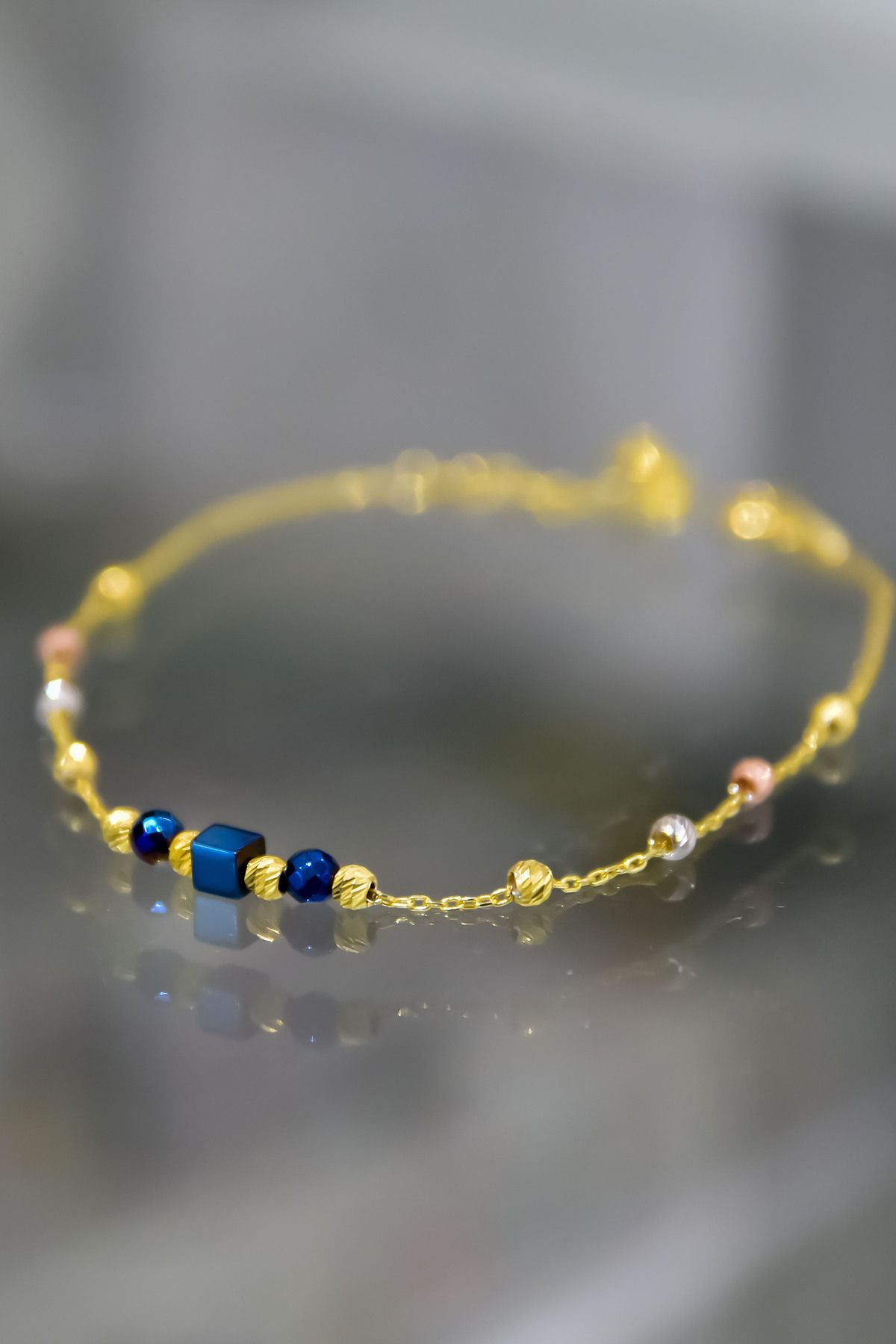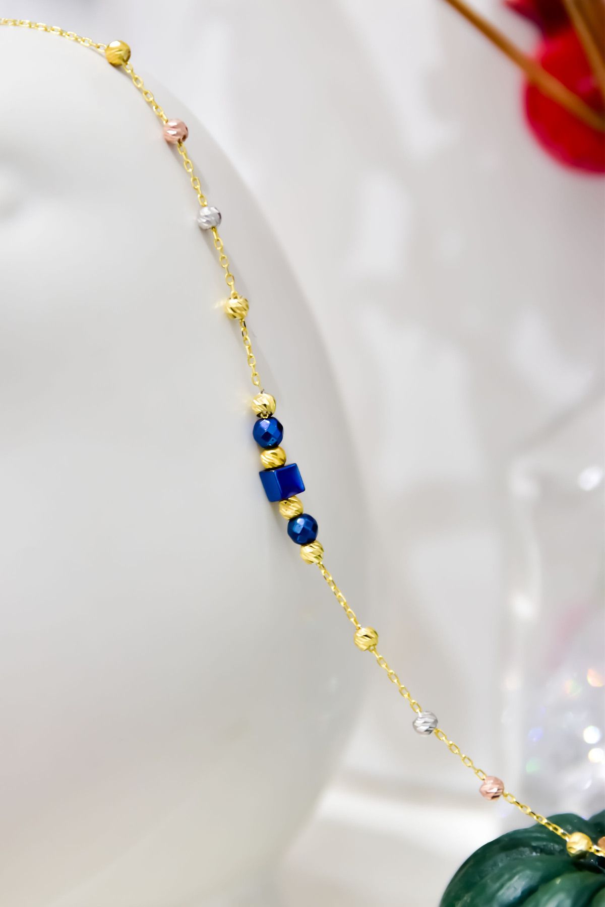 925 Ayar Gümüş Gold Kaplama Dorika Toplu ,Lacivert Kare Boncuk Bileklik