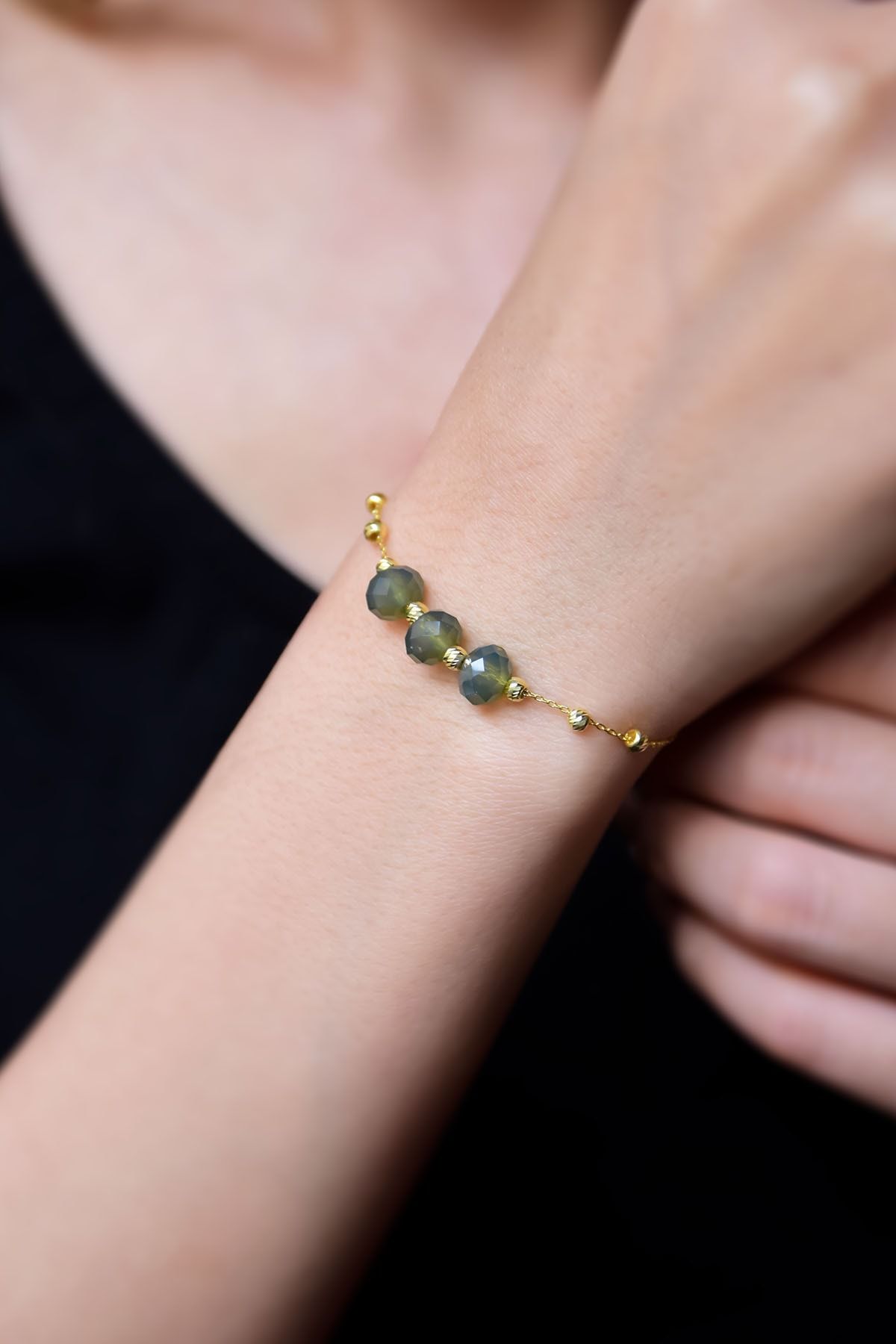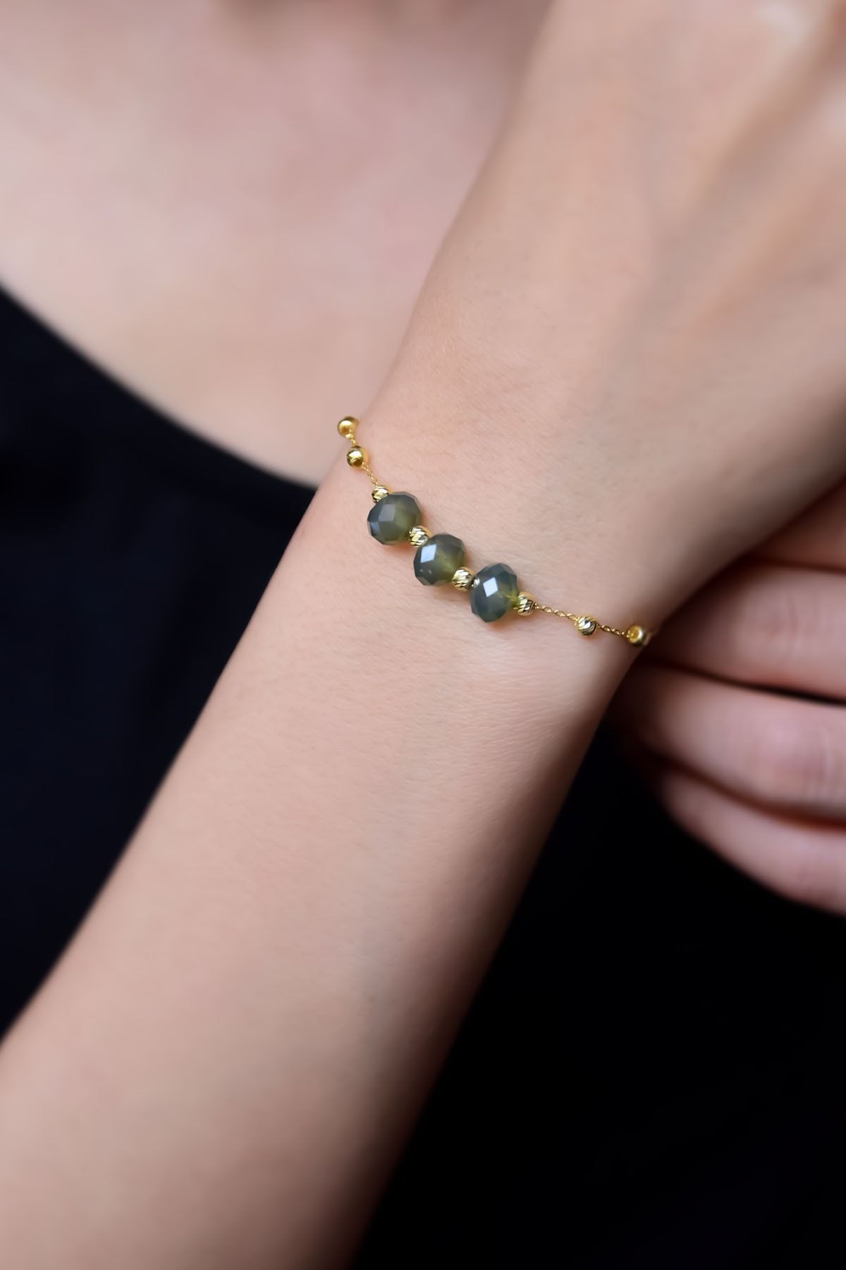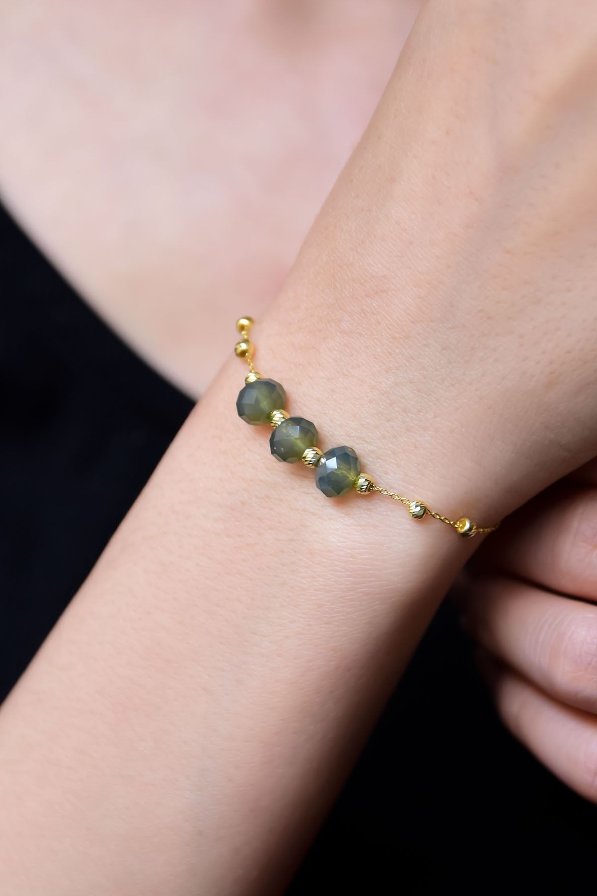 Maden : 925 Ayar Gümüş. Kaplama: Gold.. Bileklik Zincir Uzunluğu: 18 cm. Taş: Doğal. Ürün Ağırlığı : 1,74 Gr ( +-). Gümüş ve değerli taşlar nedeniyle belirtilen ortalama ürün ağırlığında ± %5 sapma olabilmektedir. Teslimat: Ürün ahşap hediye kutusunda gönderilecektir. Kullanım: Parfüm, dezenfektan, çamaşır suyu gibi kimyasallardan uzak tutunuz.