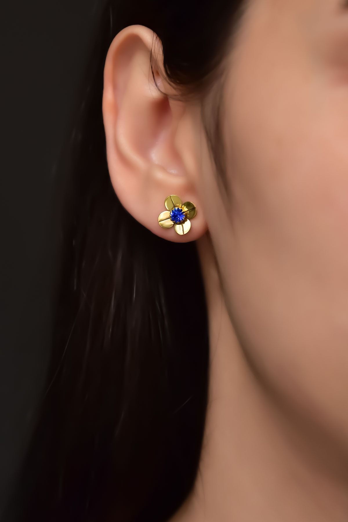 Etiketler925 Ayar Gümüş Gold Kaplama Eylül Ayı Doğum Taşlı Frezya Çiçeği Küpe