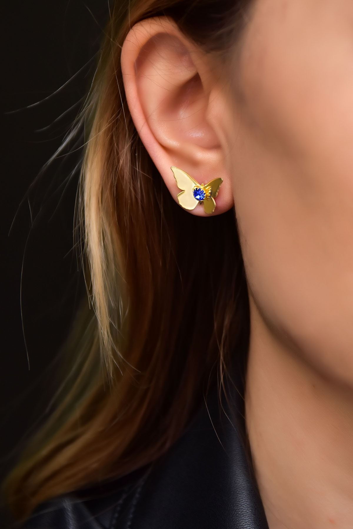 925 Ayar Gümüş Gold Kaplama Eylül Ayı Doğum Taşlı Kelebek Küpe
