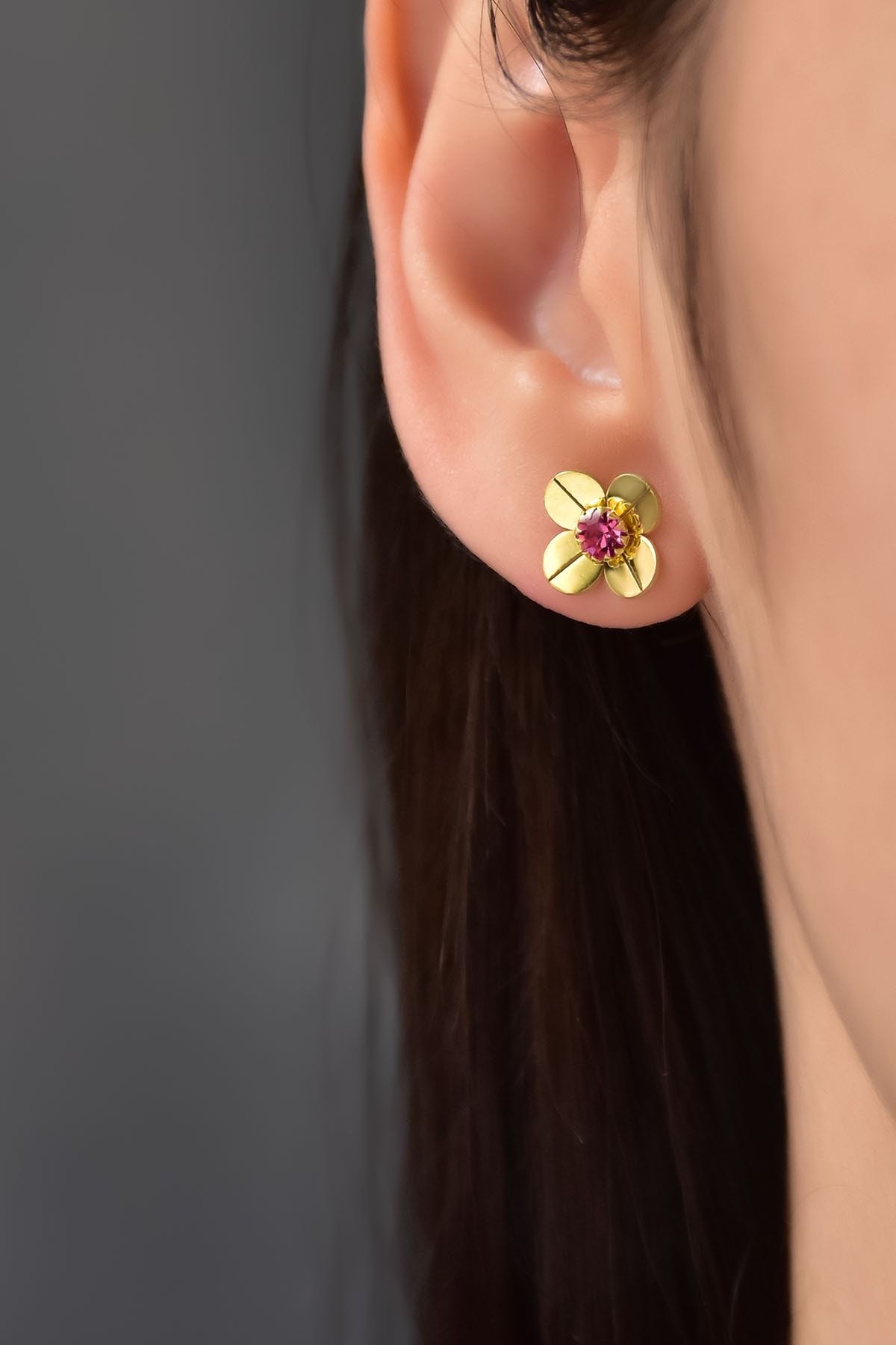 Etiketler925 Ayar Gümüş Gold Kaplama Haziran Ayı Doğum Taşlı Frezya Çiçeği Küpe