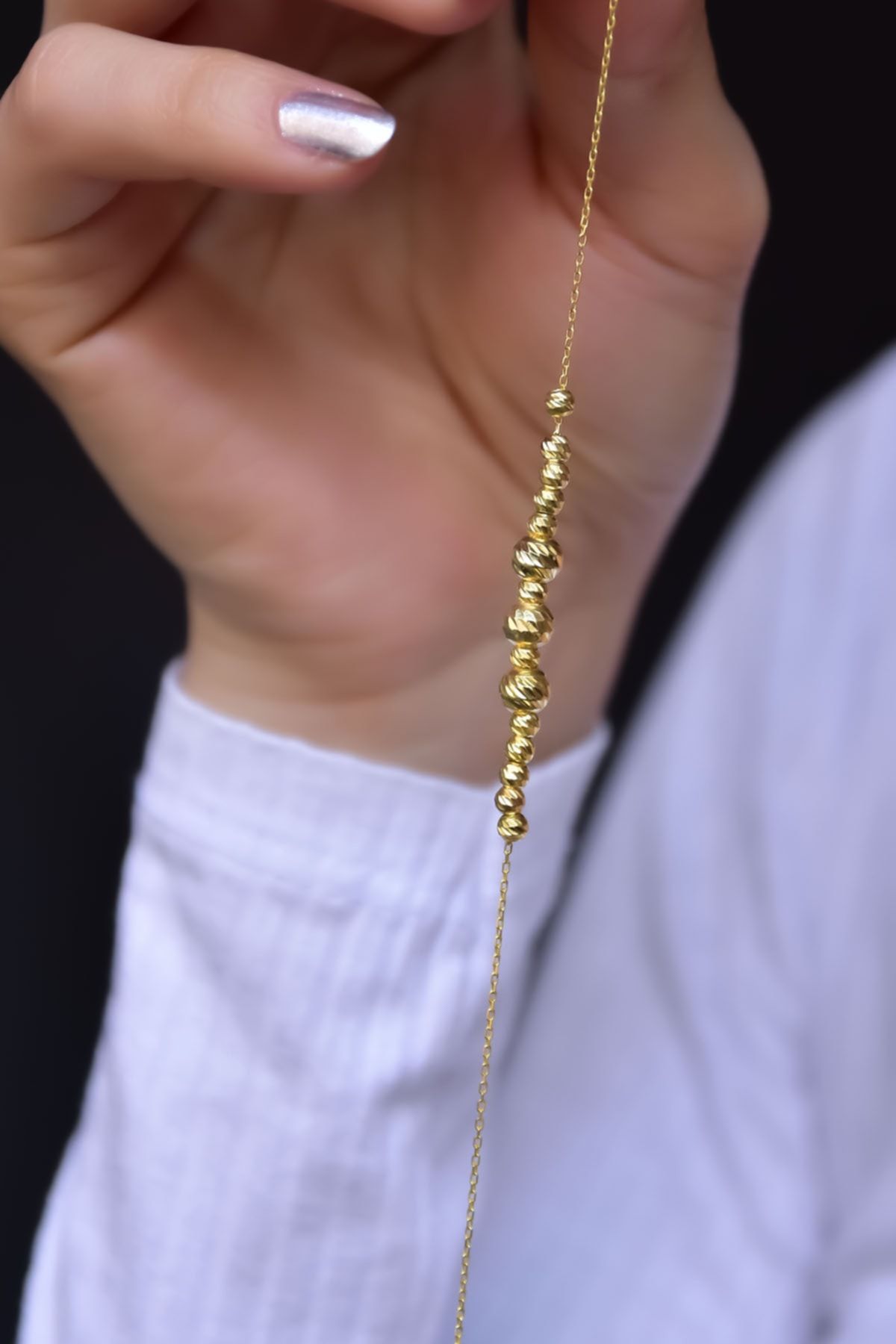 Maden : 925 Ayar Gümüş. Kaplama: Gold . Ağırlığı : 1,67 Gr ( +-). Zincir uzunluğu: 18 cm. Gümüş ve değerli taşlar nedeniyle belirtilen ortalama ürün ağırlığında ± %5 sapma olabilmektedir. Teslimat: Ürün ahşap hediye kutusunda gönderilecektir. Kullanım: Parfüm, dezenfektan, çamaşır suyu gibi kimyasallardan uzak tutunuz.
