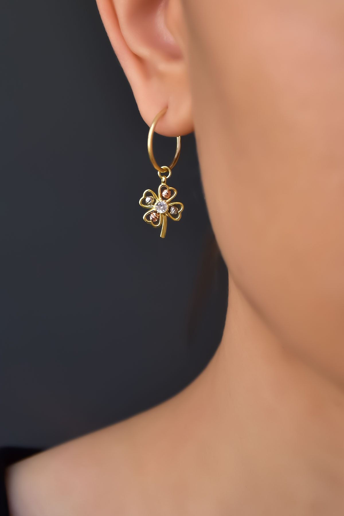 Maden : 925 Ayar Gümüş. Kaplama: Gold. Ürün Ağırlığı :2,08 Gr. ( +-). Halka Çapı: 1,6 cm. En-Boy: 1 x 1,5 cm. Gümüş ve değerli taşlar nedeniyle belirtilen ortalama ürün ağırlığında ± %5 sapma olabilmektedir. Teslimat: Ürün ahşap hediye kutusunda gönderilecektir. Kullanım: Parfüm, dezenfektan, çamaşır suyu gibi kimyasallardan uzak tutunuz.