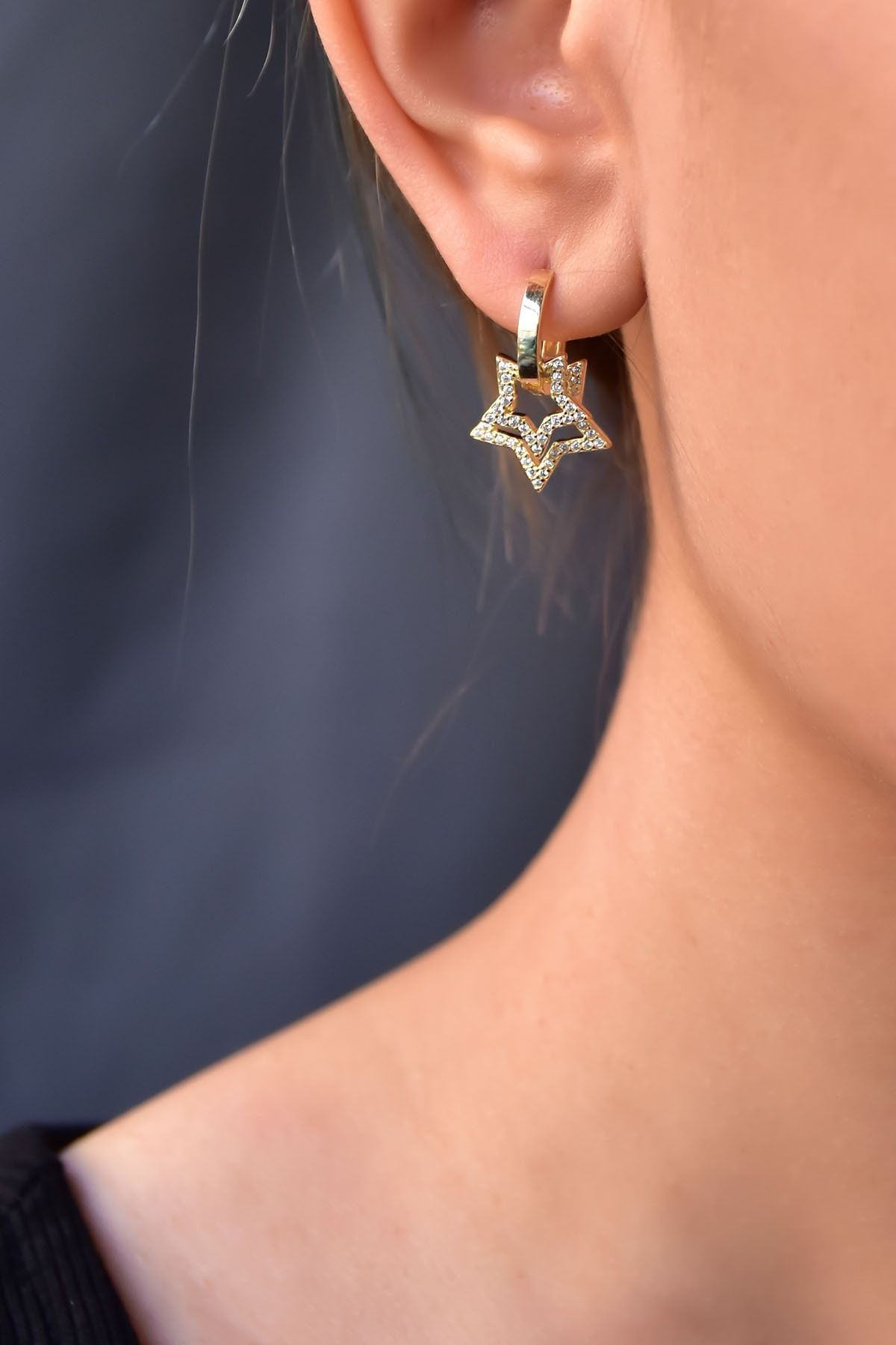 Maden : 925 Ayar Gümüş. Kaplama: Gold. Halka Çapı:1,3 cm. Büyük Figür En x Boy: 1,5 cm. Küçük Figür En x Boy:1,1 cm. Ürün Ağırlığı : 4,29 Gr ( +-) Gümüş ve değerli taşlar nedeniyle belirtilen ortalama ürün ağırlığında ± %5 sapma olabilmektedir. Kullanım: Parfüm, dezenfektan, çamaşır suyu gibi kimyasallardan uzak tutunuz.