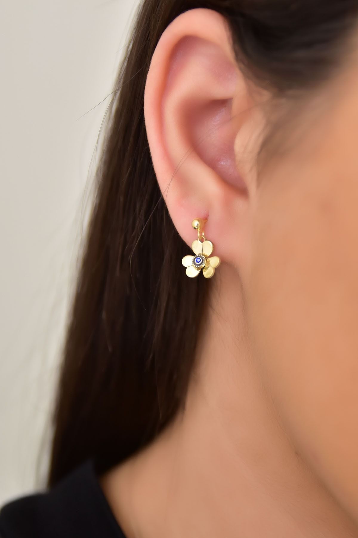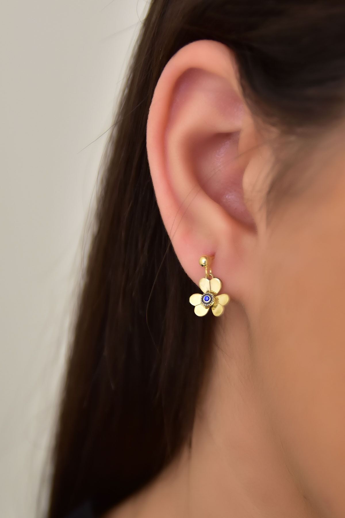 925 Ayar Gümüş Gold Kaplama Kalemli Zirkon Taşlı Frezya Çiçeği Küpe