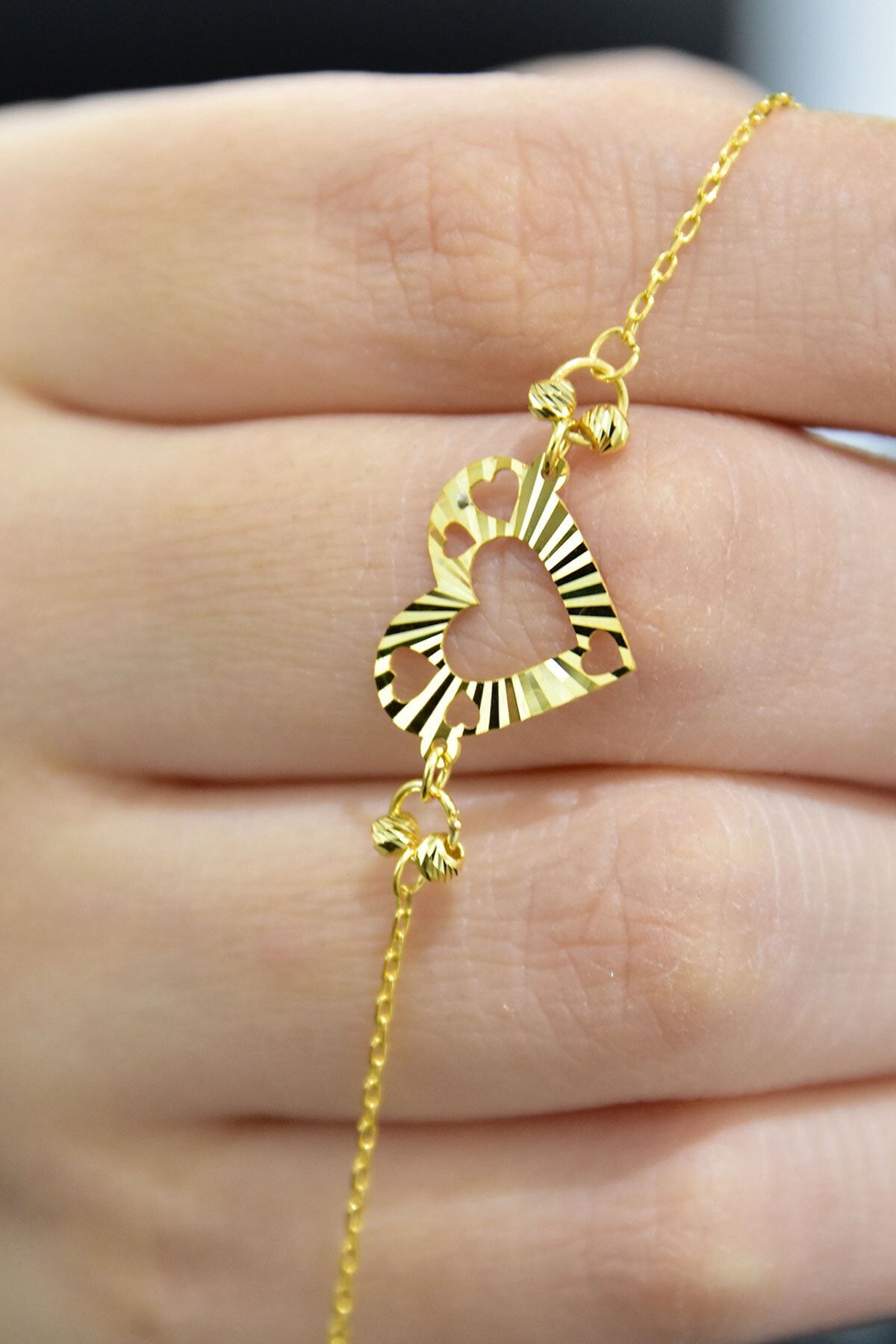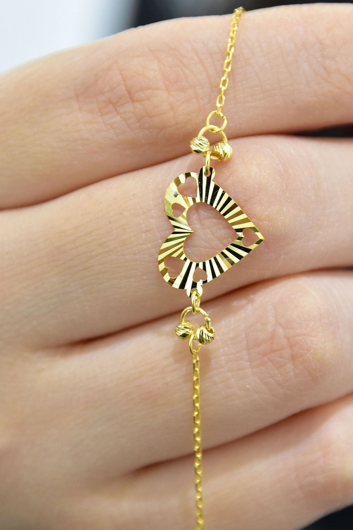 Etiketler925 Ayar Gümüş Gold Kaplama Kalp Kristal Kesim Bileklik