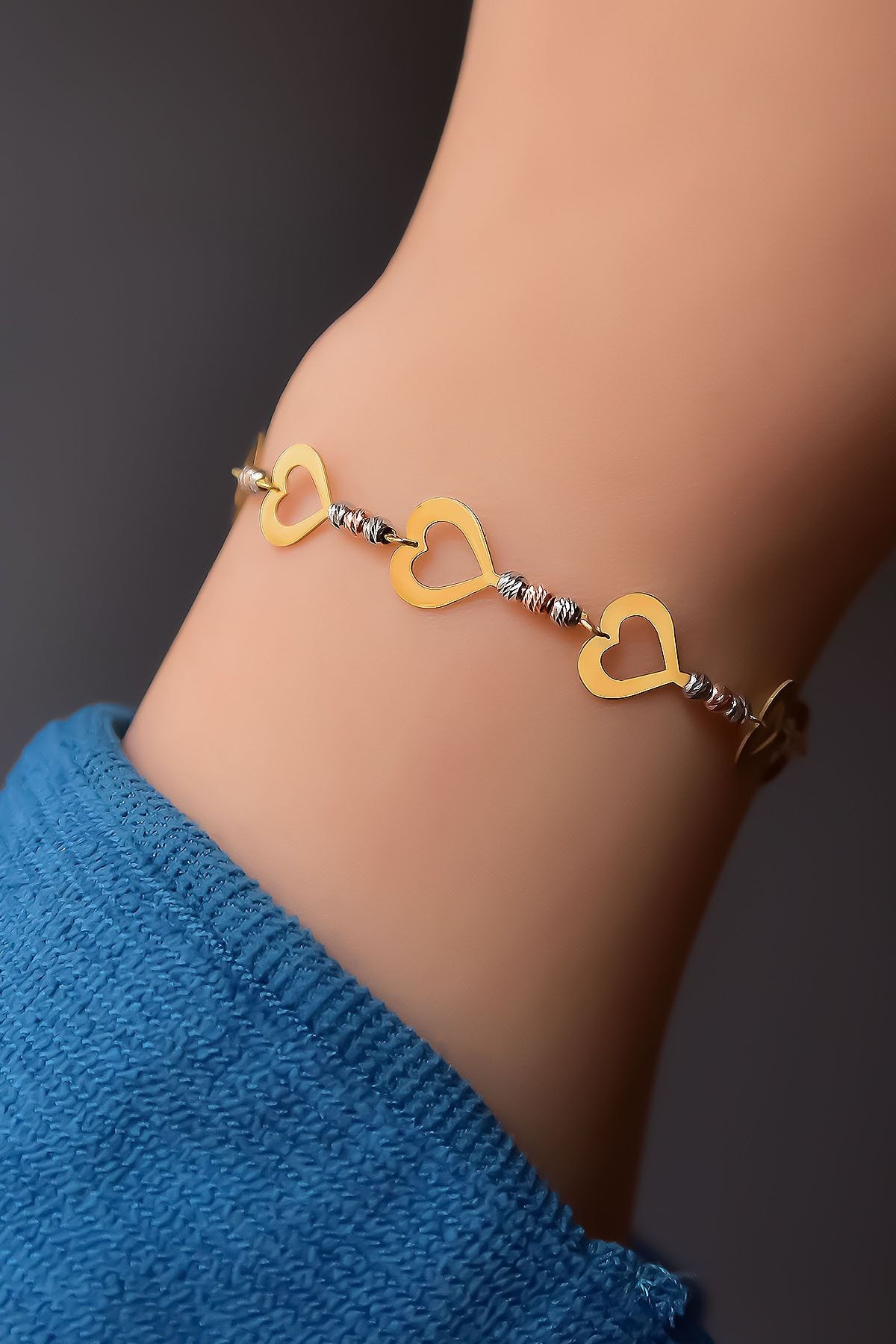 Maden : 925 Ayar Gümüş . Kaplama Gold. Kalp En x Boy:1 cm *1 cm. Bileklik Ağırlık: 2,78 gr. Zincir Boyu: 18 cm. Teslimat : Ürün kutusunda gönderilecektir. Gümüş ve değerli taşlar nedeniyle belirtilen ortalama ürün ağırlığında ± %5 sapma olabilmektedir. Kullanım: Parfüm, dezenfektan, çamaşır suyu gibi kimyasallardan uzak tutunuz.
