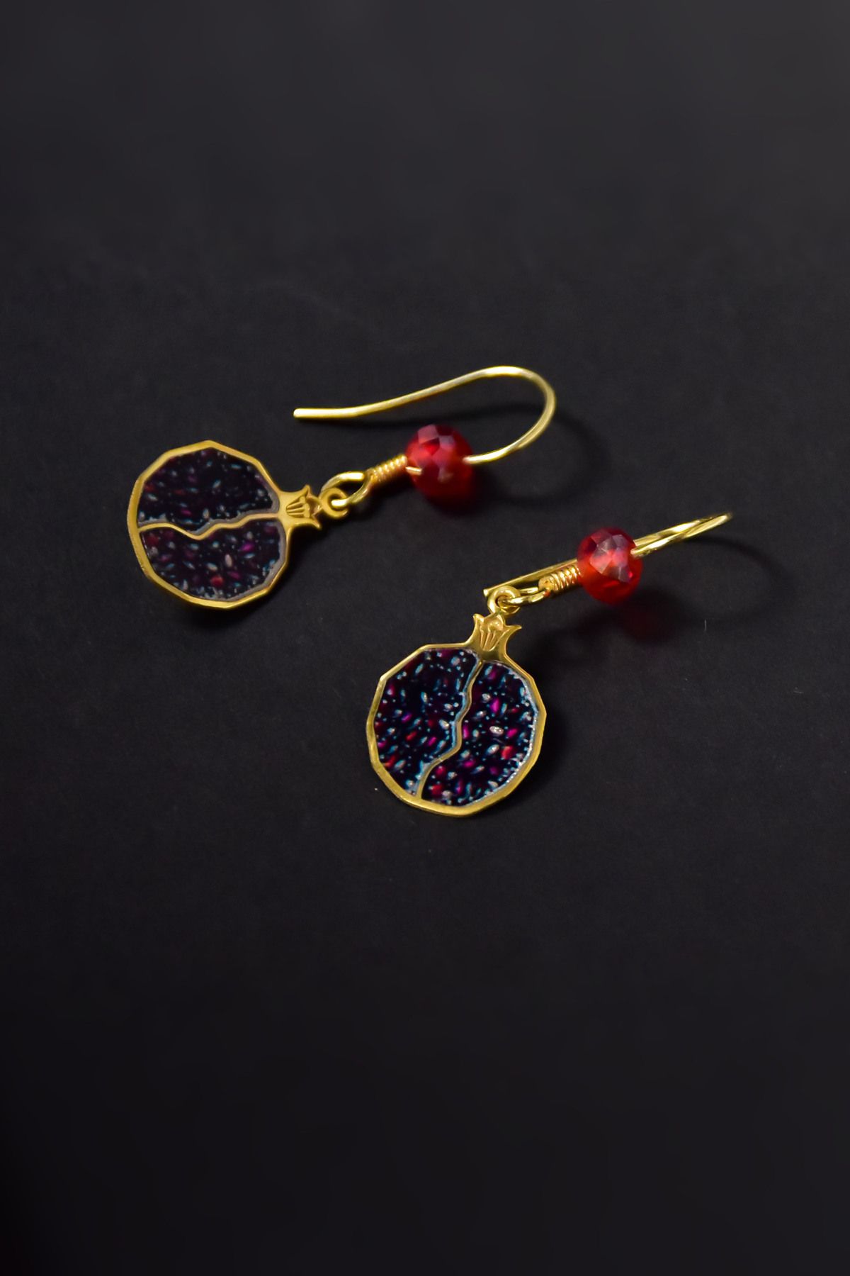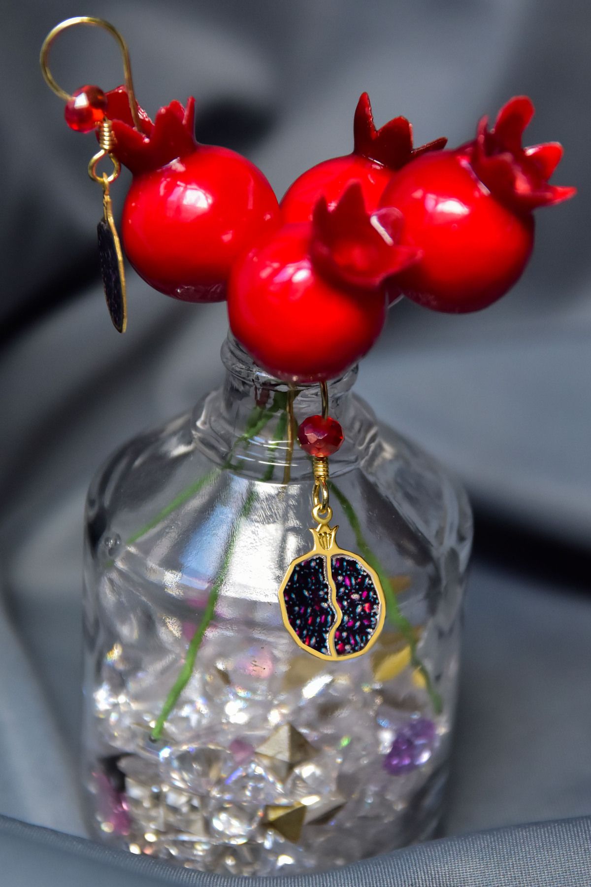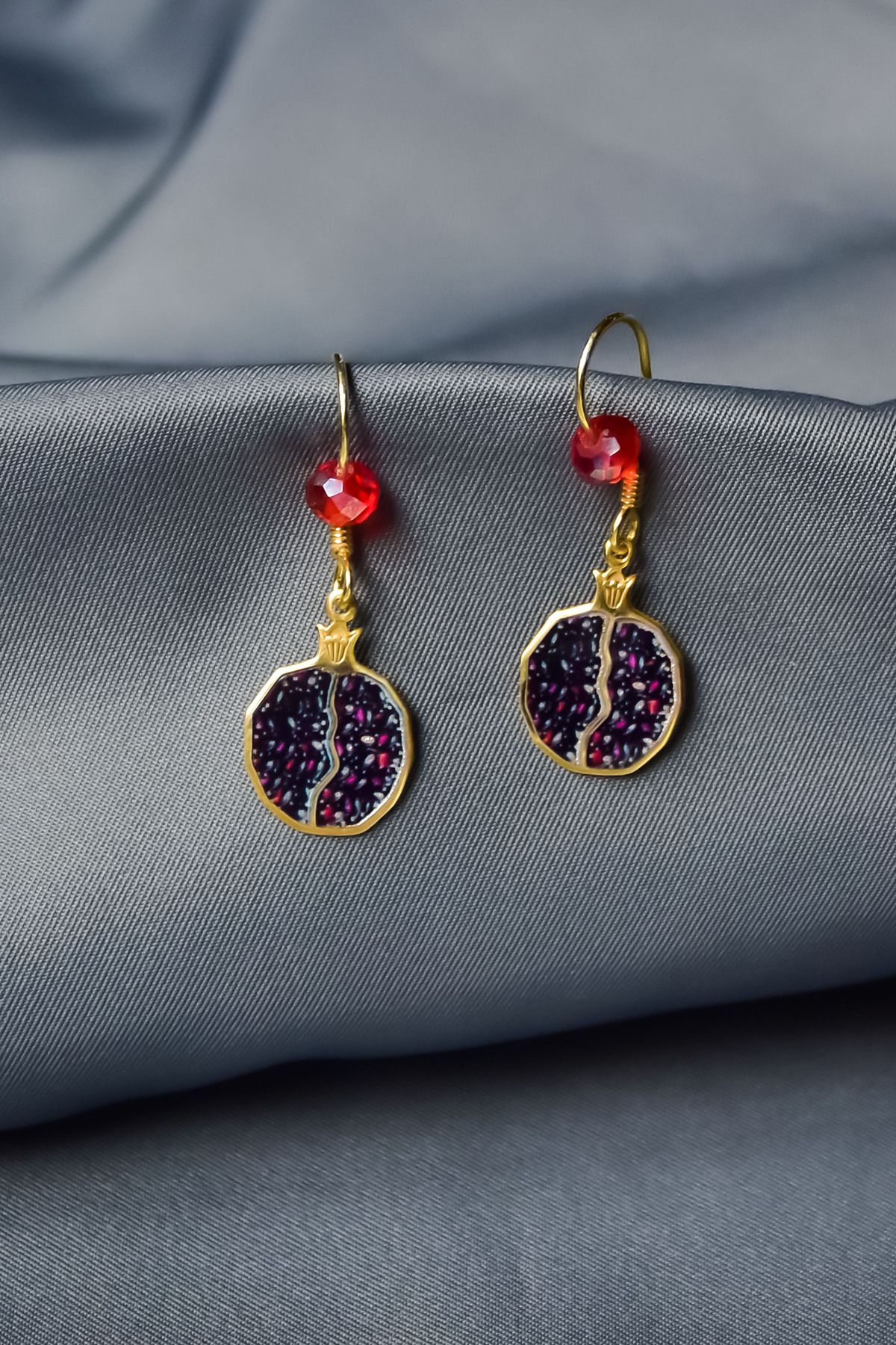 Etiketler925 Ayar Gümüş Gold Kaplama Kırmızı Boncuklu Bereket Tılsımı Nar Tanesi Küpe