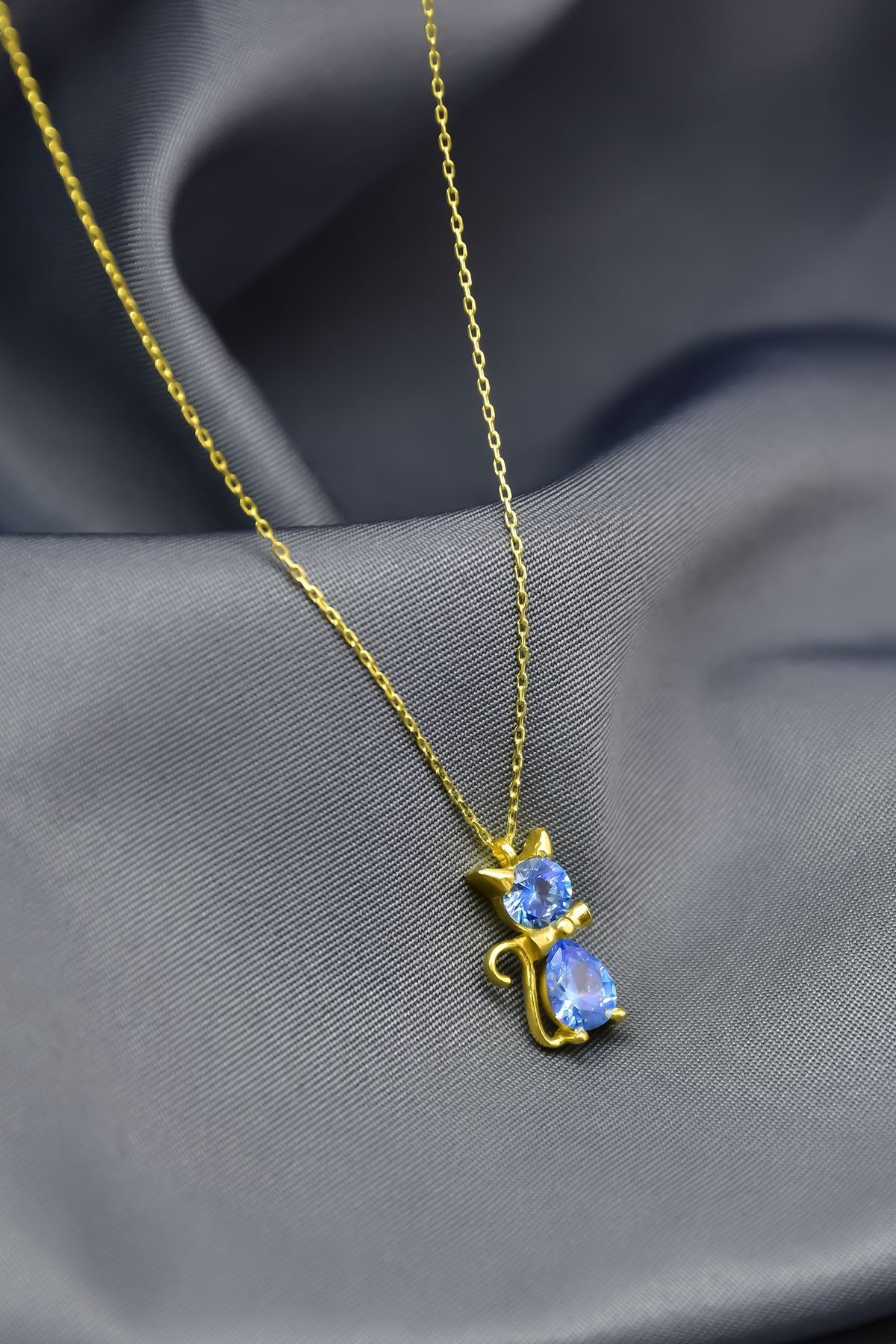 Etiketler925 Ayar Gümüş Gold Kaplama Mart Ayı Doğum Taşlı Kedi Kolye
