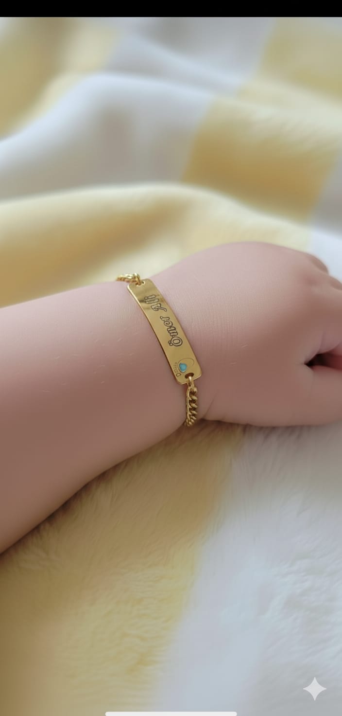 Maden Ayar: 925 Ayar Gümüş. Maden Rengi: Gold. Zincir boyu: 13 cm / 1-5 yaş. Bileklik Ağırlığı: 4,50 gr. Teslimat: Ürün kutu ile gönderilecektir. ''Gümüş ürünlerin yapısı gereği kararmalar meydana gelebilir daha uzun ömürlü olması için; Parfüm gibi kozmetik ürünlere direkt temas etmediği sürece ürün ömrü daha uzun olacaktır.''
