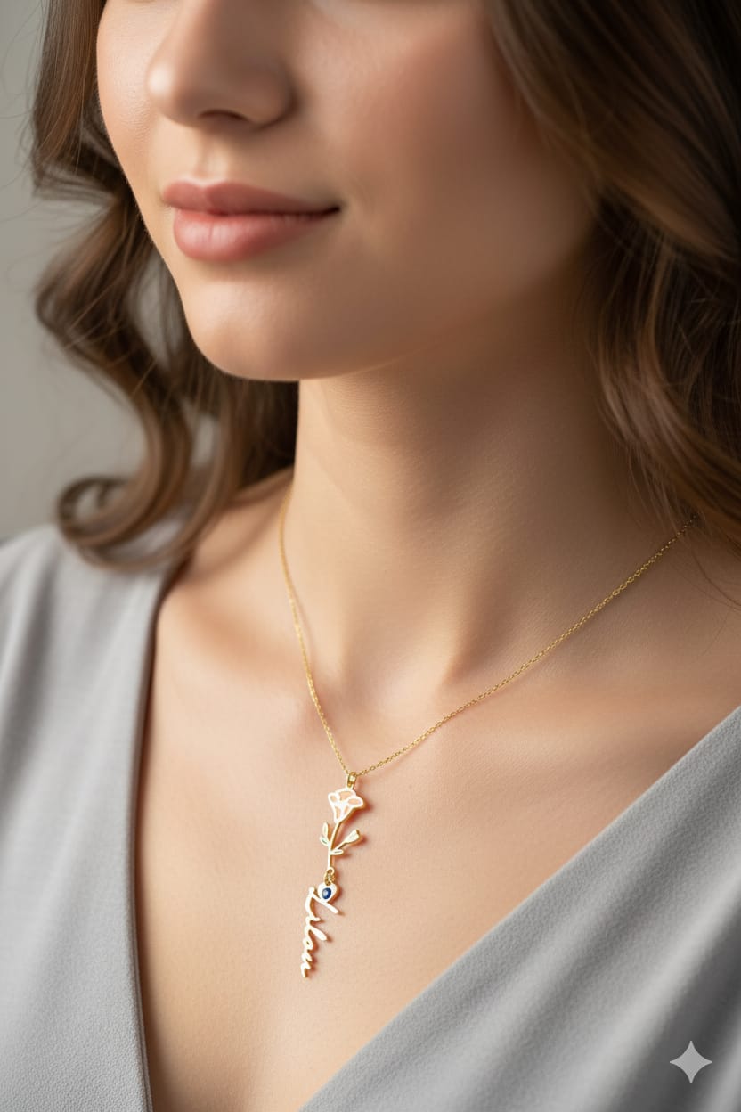 Maden : 925 Ayar Gümüş. Kaplama: Gold . En x Boy: 1,0 x 4,0 cm (-+). Zincir Uzunluğu: 42 cm. Ürün Ağırlığı : 2,74 Gr ( +-). Ürün Ebat ve Ağırlık bilgileri isme göre değişiklik göstermektedir. Gümüş ve değerli taşlar nedeniyle belirtilen ortalama ürün ağırlığında ± %5 sapma olabilmektedir. Teslimat: Ürün ahşap hediye kutusunda gönderilecektir. Kullanım: Parfüm, dezenfektan, çamaşır suyu gibi kimyasallardan uzak tutunuz.