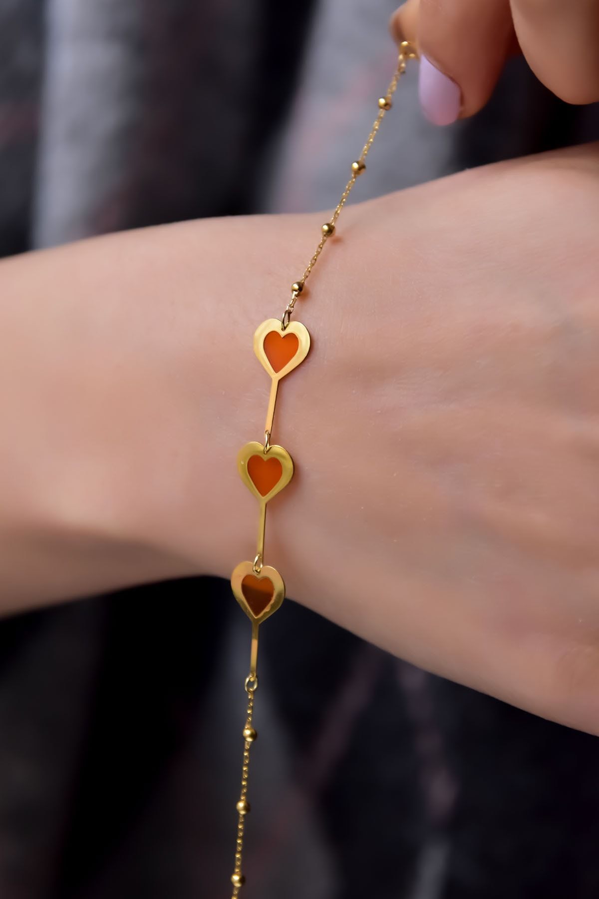 Etiketler925 Ayar Gümüş Gold Kaplama Parlayan Rüya Serisi Kalp Tasarım Ebruli Cam Boyalı Bileklik