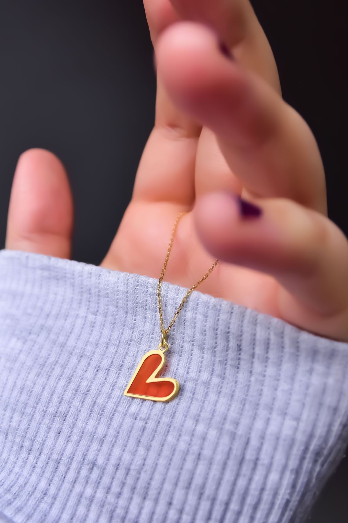 Etiketler925 Ayar Gümüş Gold Kaplama Parlayan Rüya Serisi Tasarım Renkli Ebruli Cam Boyalı Kalp Kolye
