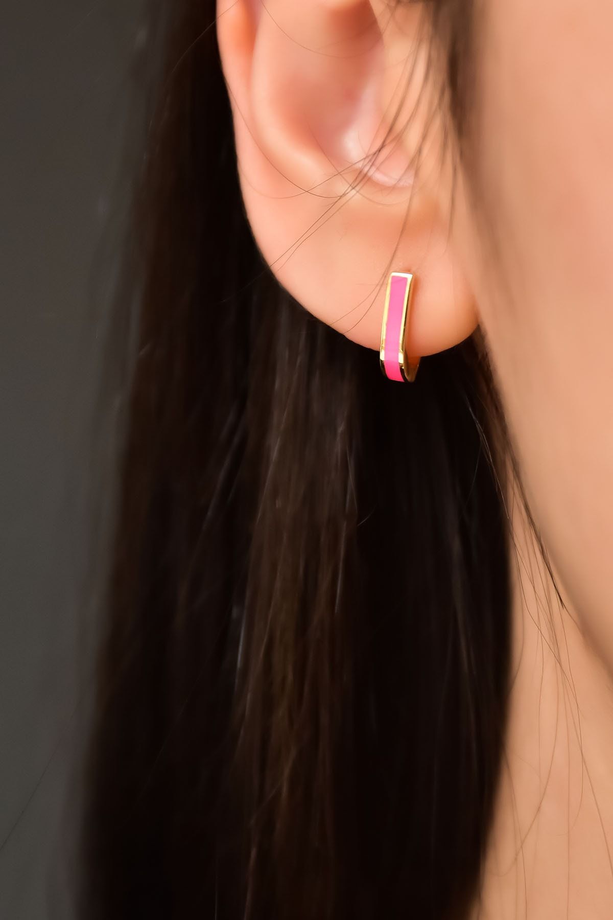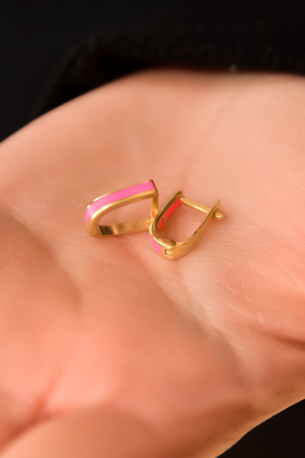 925 Ayar Gümüş Gold Kaplama Pembe Mineli Dikdörtgen Halka Küpe