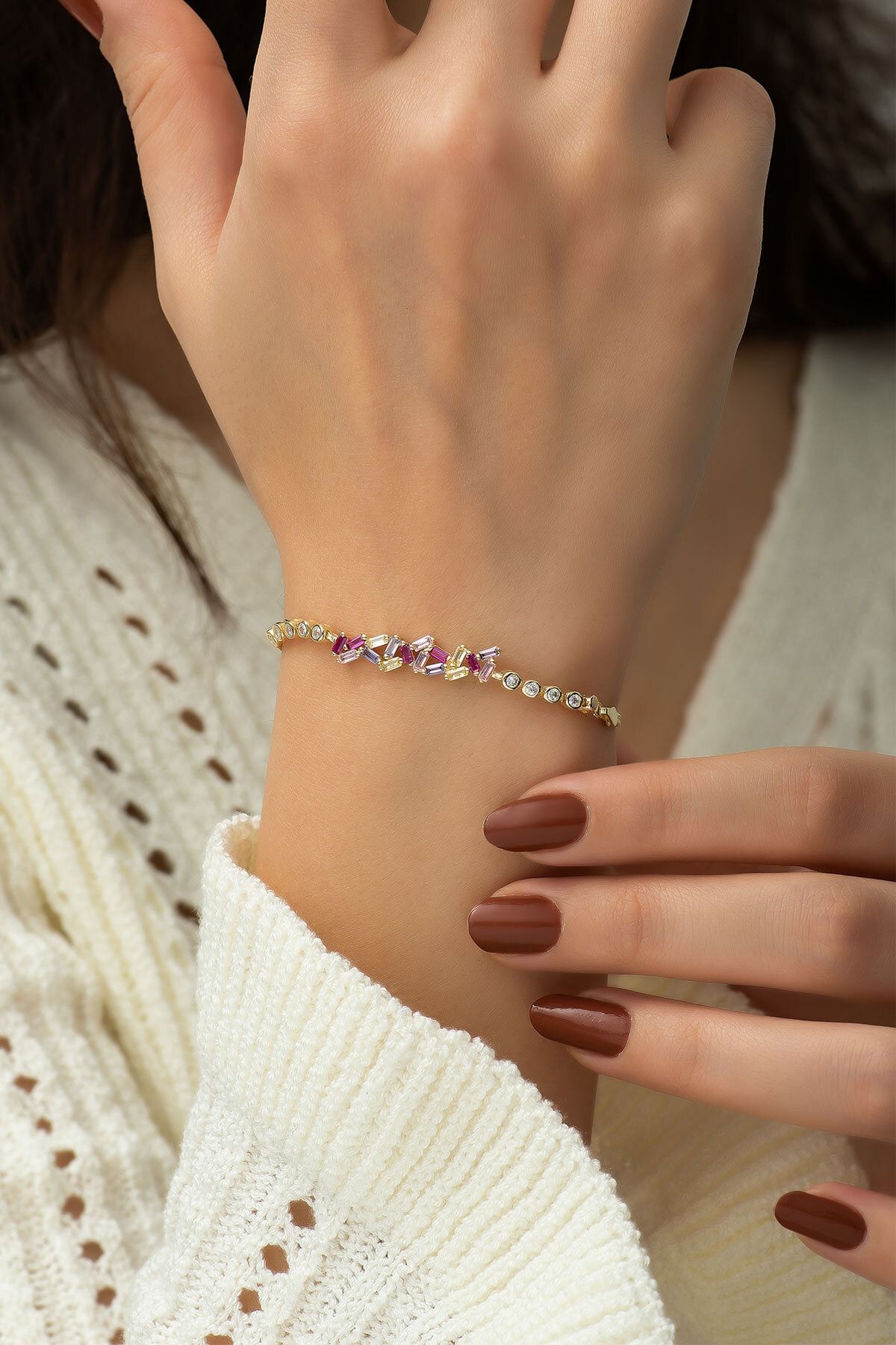 Maden : 925 Ayar Gümüş. Kaplama: Gold. Taş: Zirkon. Ağırlık: 4,09 Gr. Uzunluk:18 cm. Gümüş ve değerli taşlar nedeniyle belirtilen ortalama ürün ağırlığında ± %5 sapma olabilmektedir. Teslimat: Ürün ahşap hediye kutusunda gönderilecektir. Kullanım: Parfüm, dezenfektan, çamaşır suyu gibi kimyasallardan uzak tutunuz.