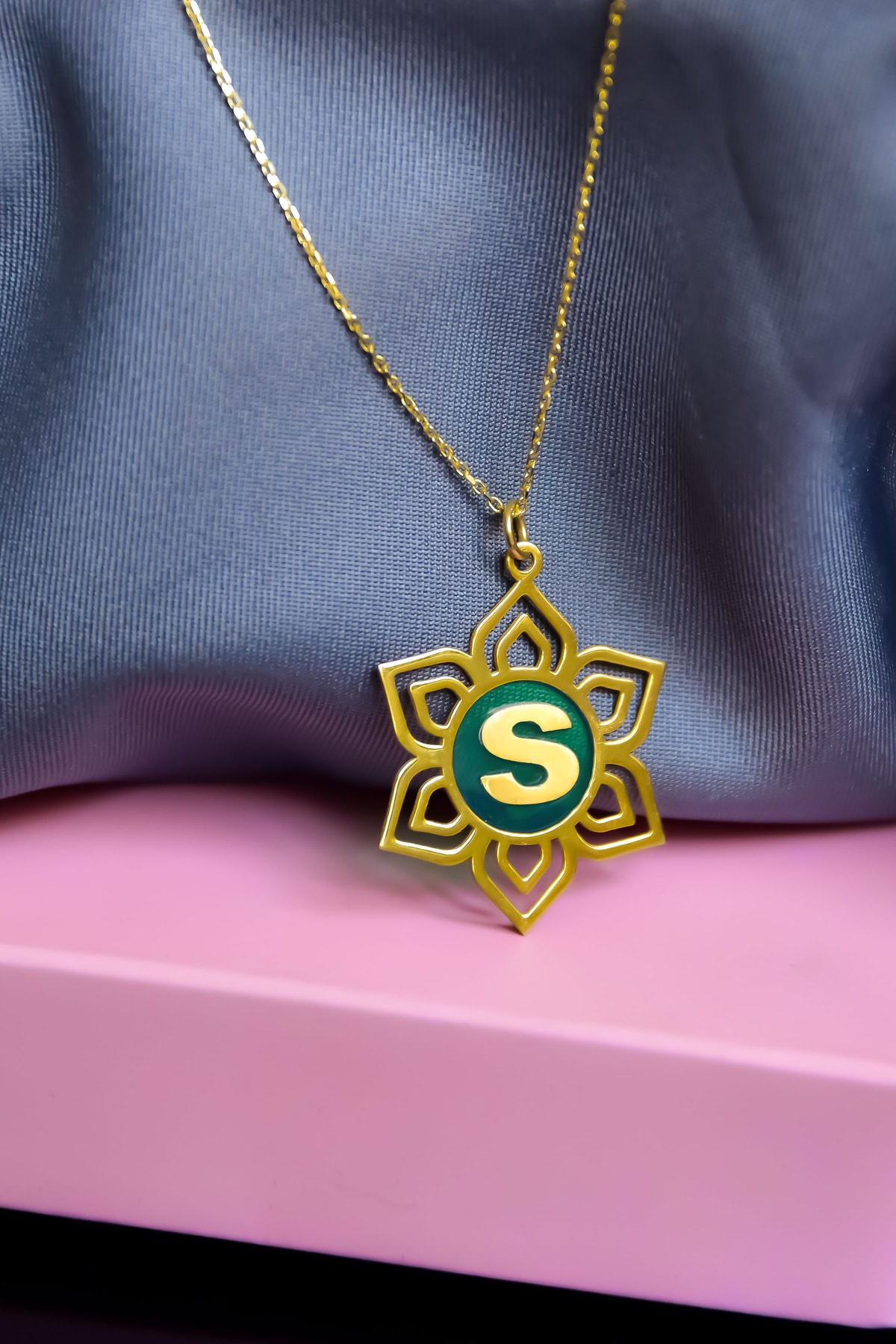 Maden : 925 Ayar Gümüş. Kaplama: Gold. Yüzey: Mine. En*Boy: 2,2 cm. Kolye Uzunluğu: 42 cm. Ağırlık: 1,92 gr. Gümüş ve değerli taşlar nedeniyle belirtilen ortalama ürün ağırlığında ± %5 sapma olabilmektedir. Teslimat: Ürün ahşap hediye kutusunda gönderilecektir. Kullanım: Parfüm, dezenfektan, çamaşır suyu gibi kimyasallardan uzak tutunuz.