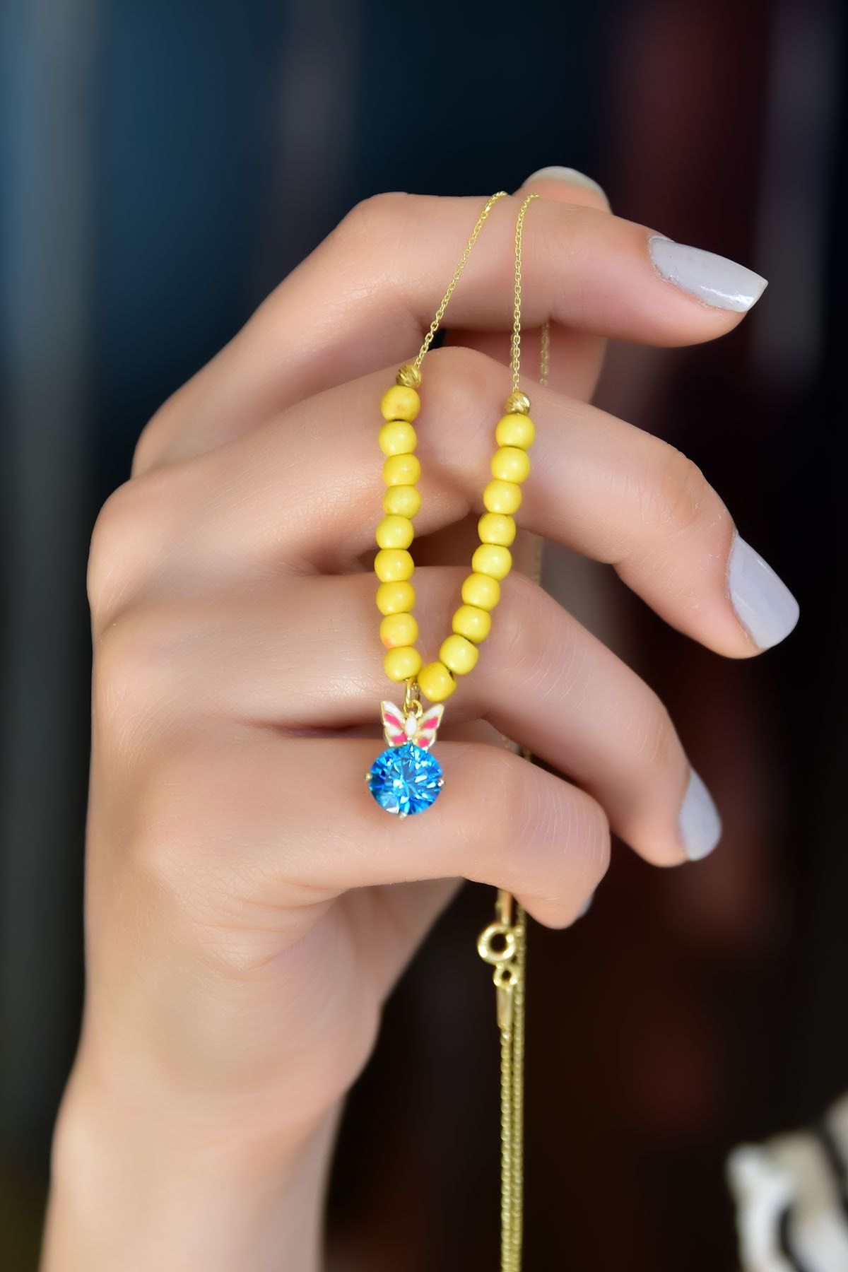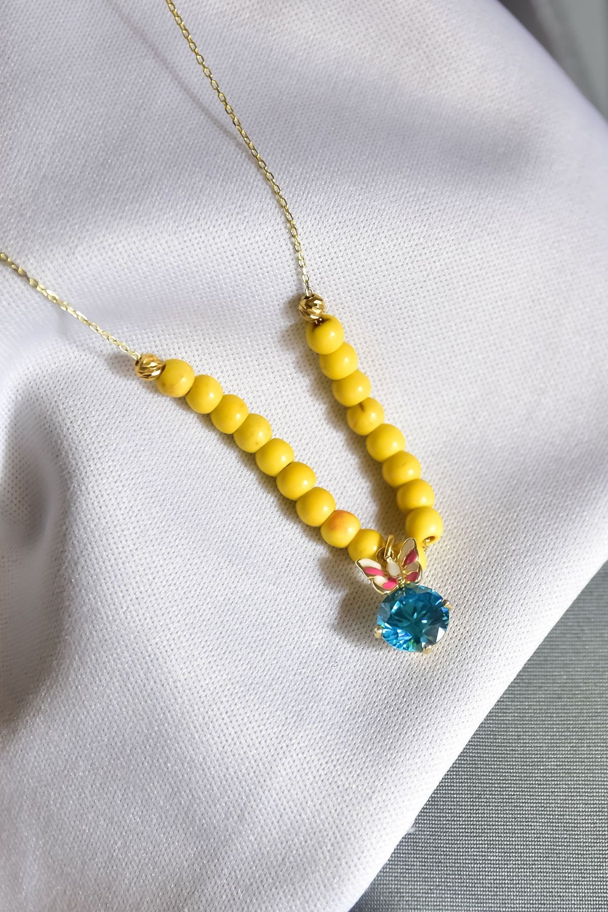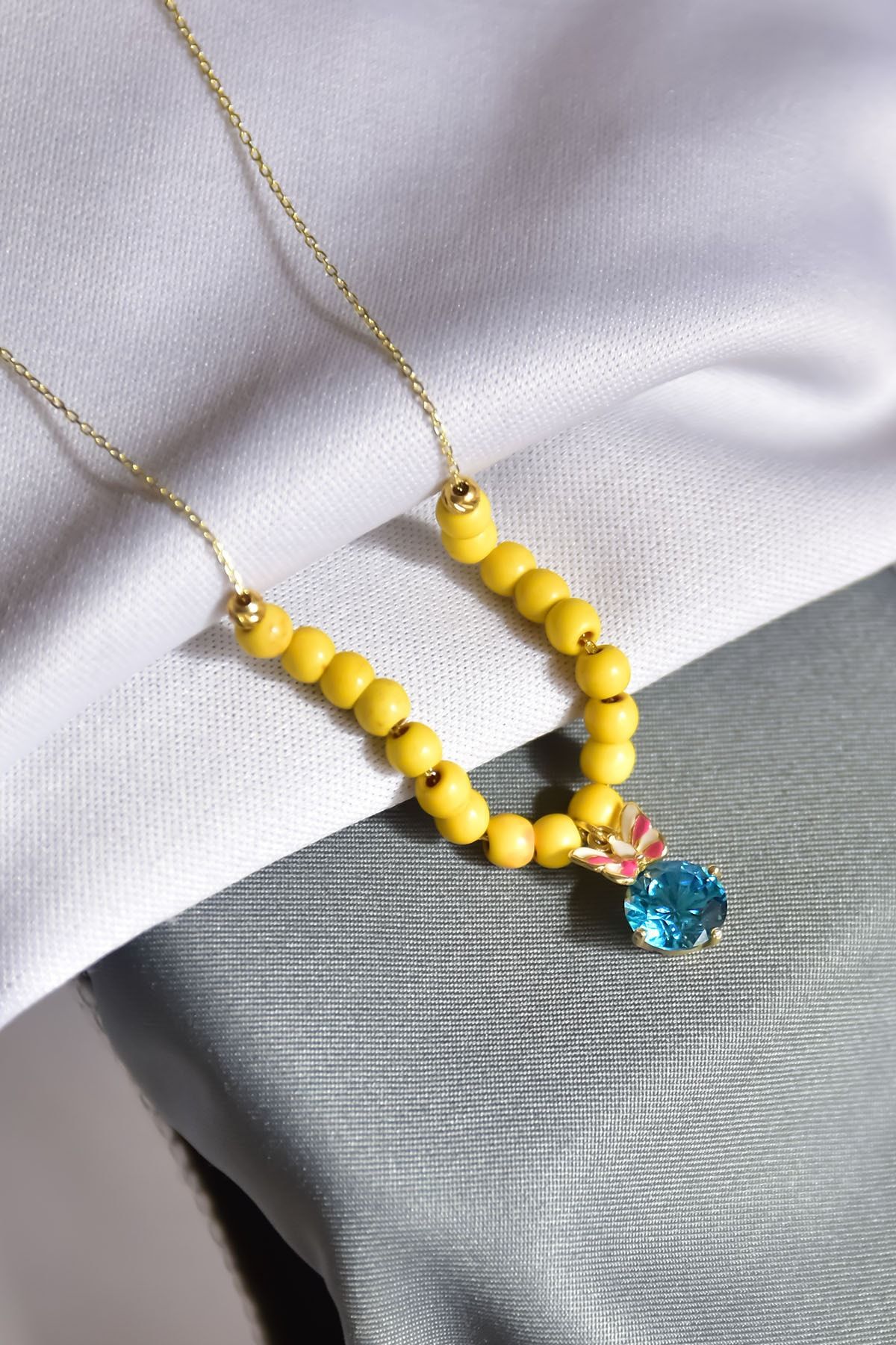 Maden : 925 Ayar Gümüş. Kaplama: Gold. Zincir Uzunluğu: 42 cm. Ağırlık: 3,55 GR. Gümüş ve değerli taşlar nedeniyle belirtilen ortalama ürün ağırlığında ± %5 sapma olabilmektedir. Teslimat: Ürün ahşap hediye kutusunda gönderilecektir. Kullanım: Parfüm, dezenfektan, çamaşır suyu gibi kimyasallardan uzak tutunuz.