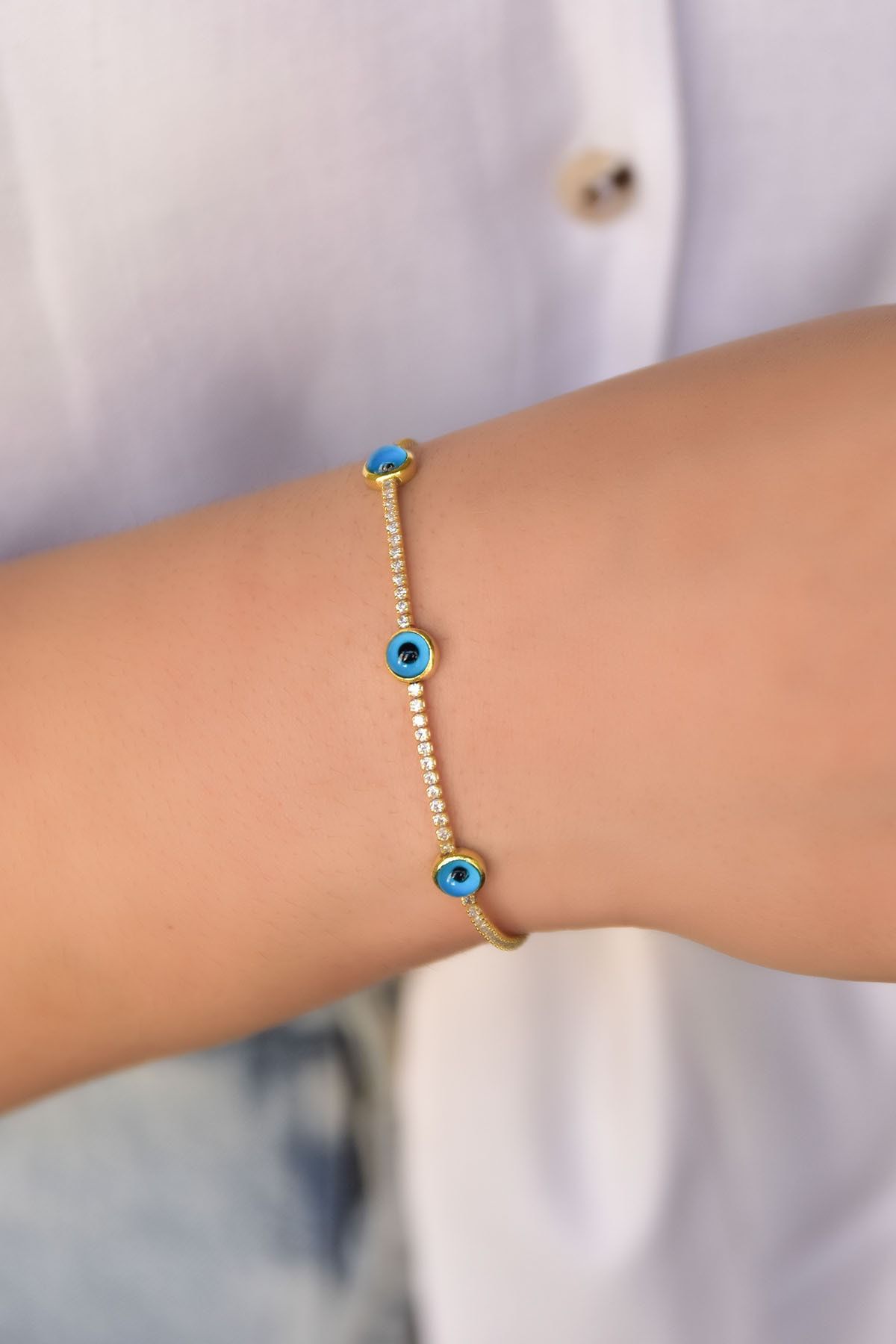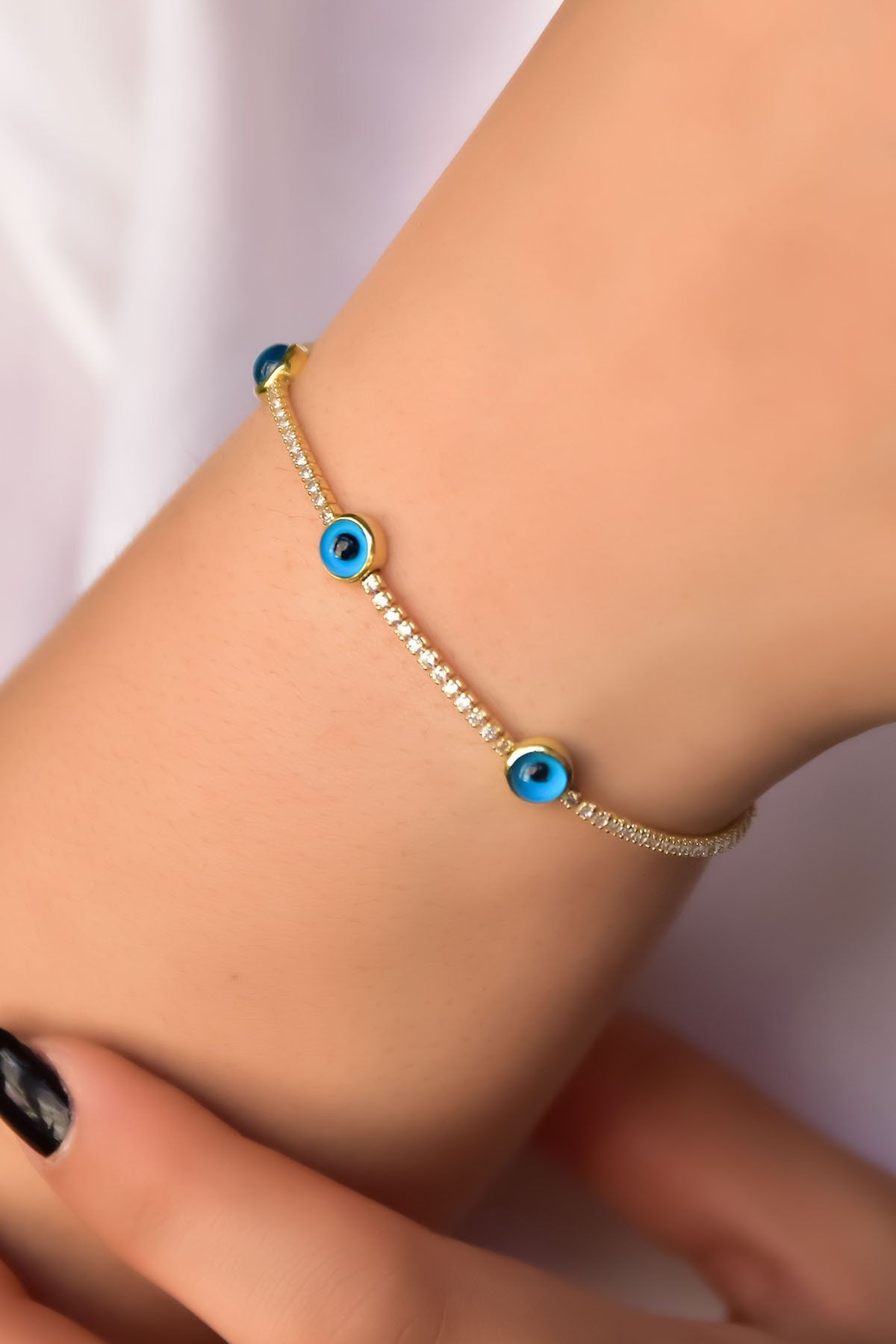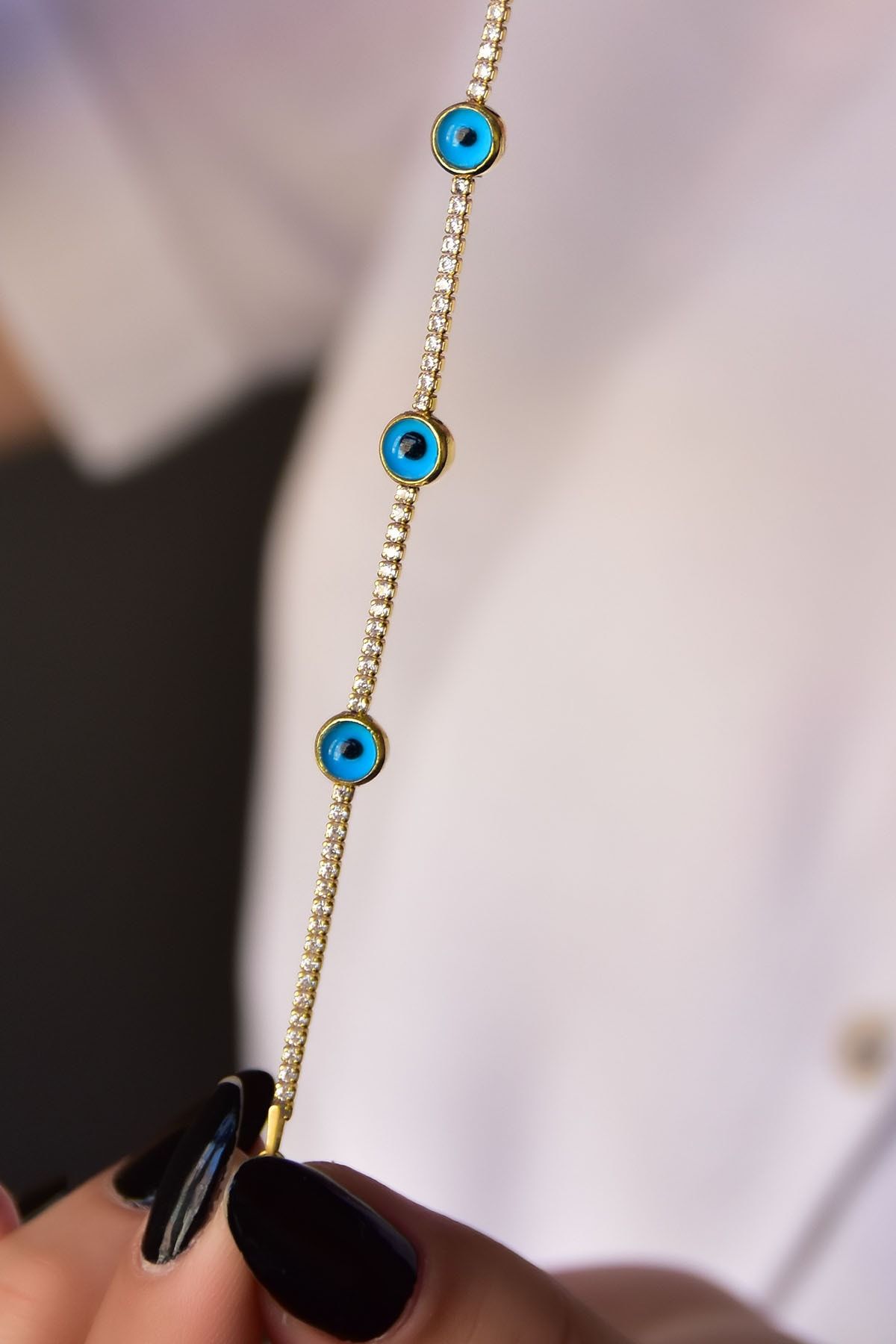 Maden : 925 Ayar Gümüş. Kaplama: Gold. Zincir Uzunluğu: 15+3 cm. Ağırlık: 3,18 Gr. Gümüş ve değerli taşlar nedeniyle belirtilen ortalama ürün ağırlığında ± %5 sapma olabilmektedir. Teslimat: Ürün ahşap hediye kutusunda gönderilecektir. Kullanım: Parfüm, dezenfektan, çamaşır suyu gibi kimyasallardan uzak tutunuz.