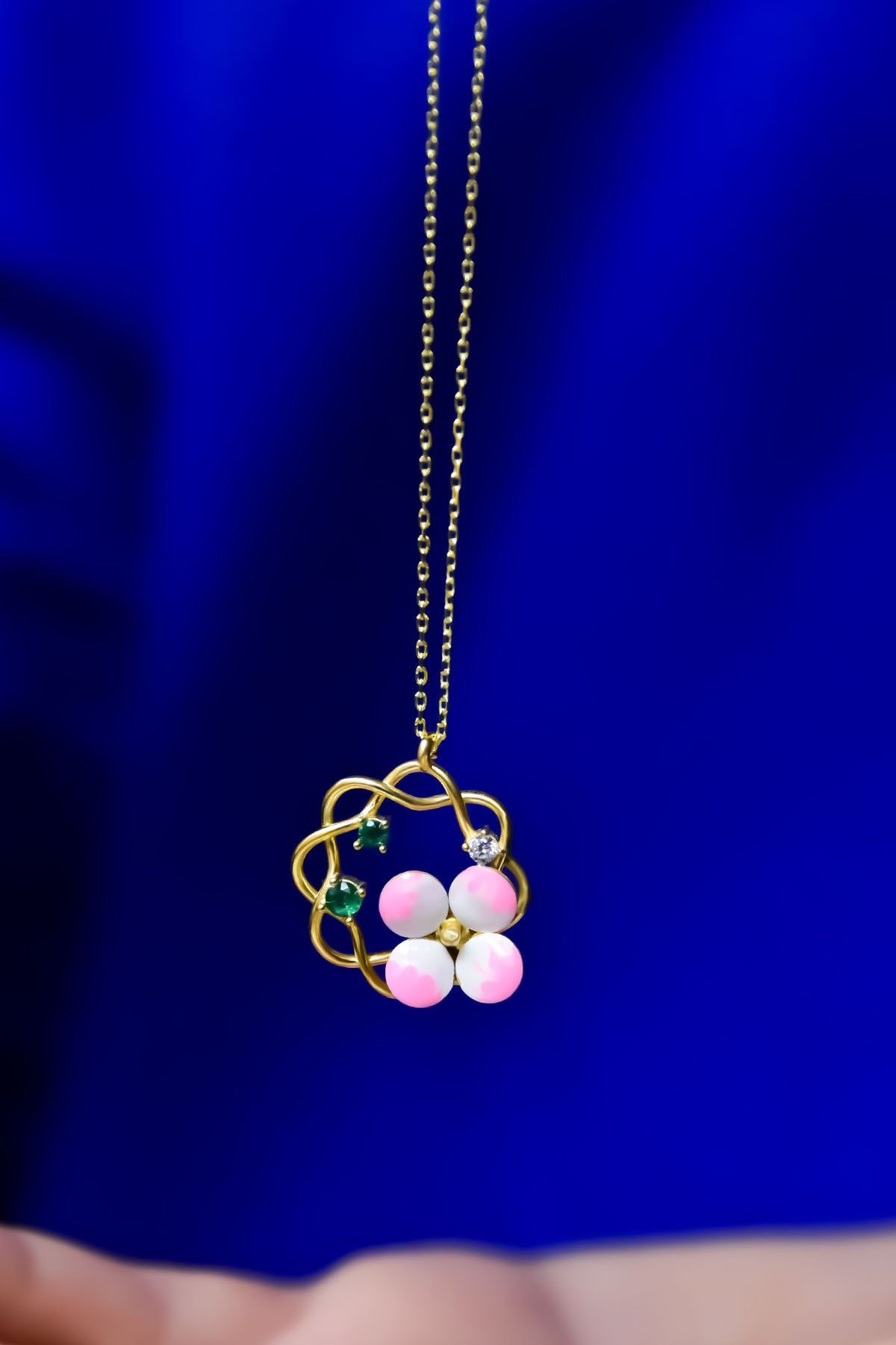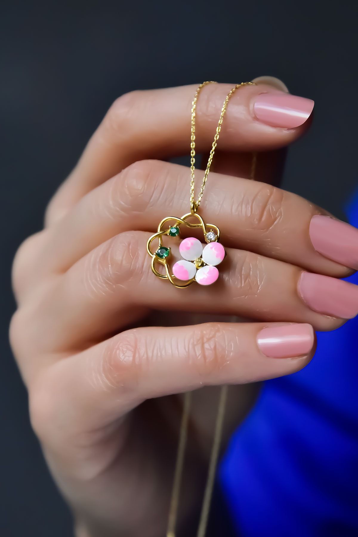 925 Ayar Gümüş Rose Kaplama Zirkon Taşlı Pembe Morpho Kelebeği Kolye