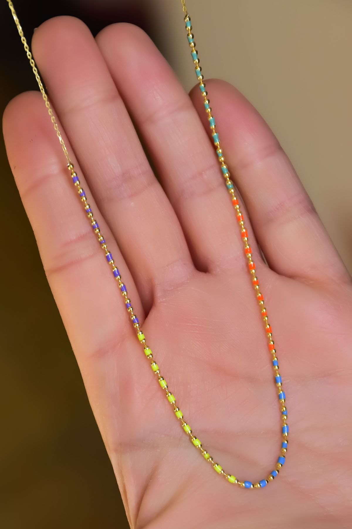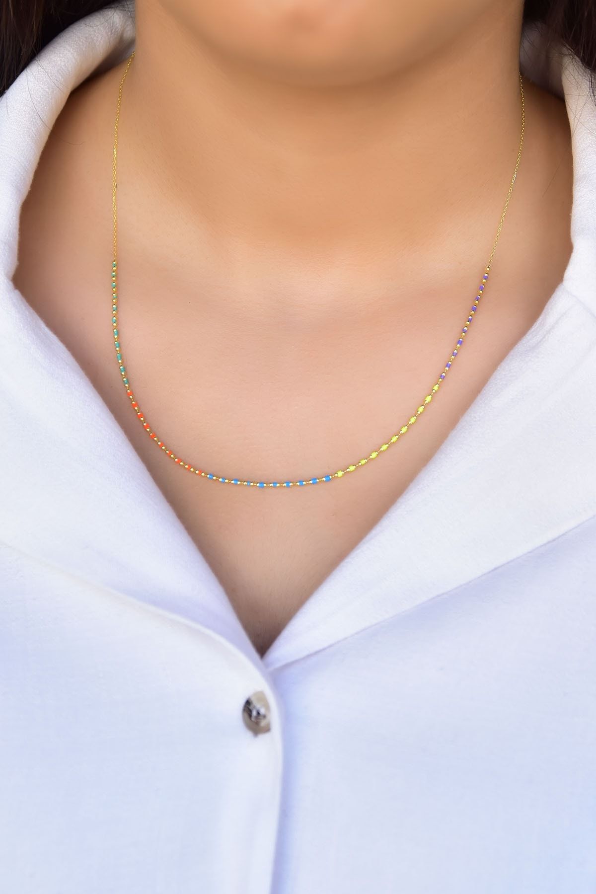 Maden : 925 Ayar Gümüş. Kaplama: Gold. Yüzey: Mine. Zincir Uzunluğu: 42 cm. Ağırlık: 2,00 Gr. Gümüş ve değerli taşlar nedeniyle belirtilen ortalama ürün ağırlığında ± %5 sapma olabilmektedir. Teslimat: Ürün ahşap hediye kutusunda gönderilecektir. Kullanım: Parfüm, dezenfektan, çamaşır suyu gibi kimyasallardan uzak tutunuz.