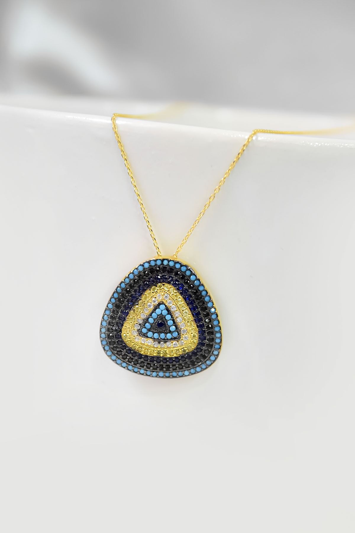 Maden : 925 Ayar Gümüş. Kaplama: Gold. Taş: Zirkon. Kolye En x Boy: 2,5 x 2,5 cm. Ürün Ağırlığı : 4,2 Gr ( +-). Zincir Uzunluğu: 42 cm. Gümüş ve değerli taşlar nedeniyle belirtilen ortalama ürün ağırlığında ± %5 sapma olabilmektedir. Teslimat: Ürün ahşap hediye kutusunda gönderilecektir. Kullanım: Parfüm, dezenfektan, çamaşır suyu gibi kimyasallardan uzak tutunuz.