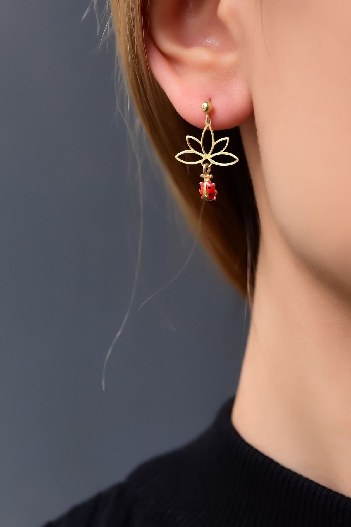Maden : 925 Ayar Gümüş. Kaplama:Gold Lotus Figür en x boy: 1,0 x 1,0 cm. Figür en x boy: 0,5 x 0,5 cm. Halka çap : 1,5 cm. Ürün ağırlığı : 1,5 gr ( +-). Gümüş ve değerli taşlar nedeniyle belirtilen ortalama ürün ağırlığında ± %5 sapma olabilmektedir. Teslimat: Ürün ahşap hediye kutusunda gönderilecektir. Kullanım: Parfüm, dezenfektan, çamaşır suyu gibi kimyasallardan uzak tutunuz.
