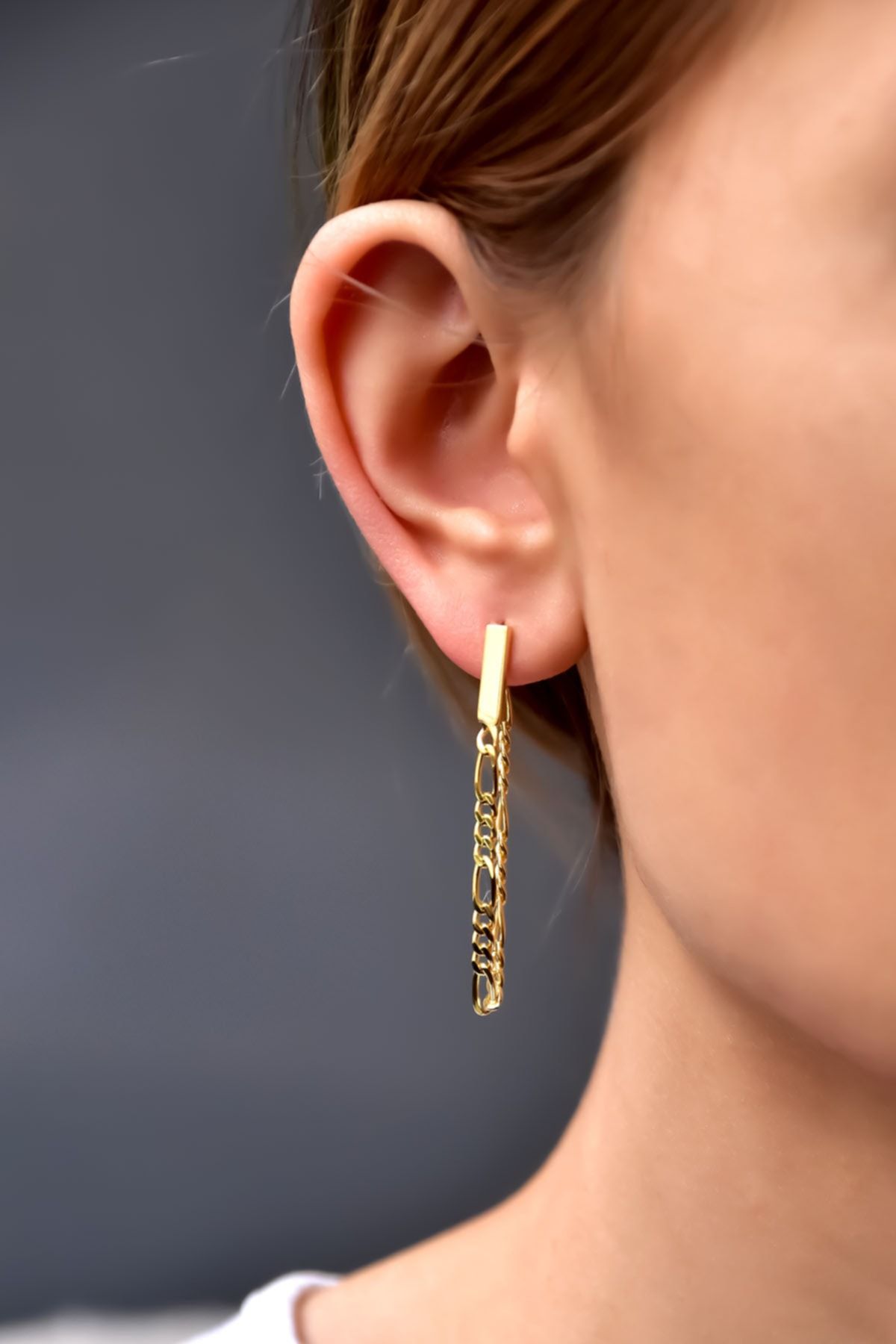 Maden : 925 ayar gümüş. Kaplama: Gold. Uzunluk:4,2 cm. Ürün ağırlığı : 3,85 gr ( +-). Gümüş ve değerli taşlar nedeniyle belirtilen ortalama ürün ağırlığında ± %10 sapma olabilmektedir. Teslimat: Ürün ahşap hediye kutusunda gönderilecektir. Kullanım: Parfüm, dezenfektan, çamaşır suyu gibi kimyasallardan uzak tutunuz.
