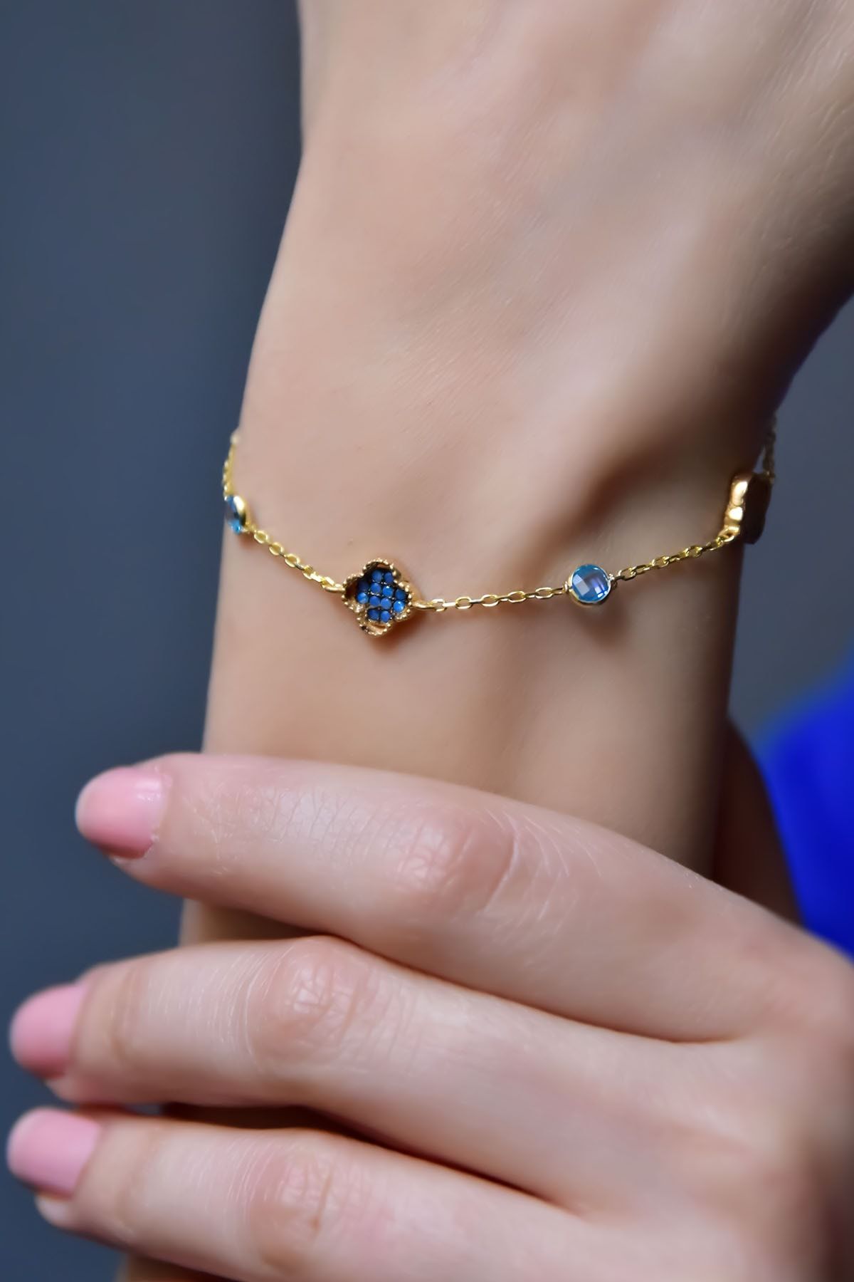Maden : 925 Ayar Gümüş . Kaplama Gold. Ağırlık: 2,37 gr. Zincir Boyu:18 cm.Figür En: 8 mm. Teslimat : Ürün kutusunda gönderilecektir. Gümüş ve değerli taşlar nedeniyle belirtilen ortalama ürün ağırlığında ± %5 sapma olabilmektedir. Kullanım: Parfüm, dezenfektan, çamaşır suyu gibi kimyasallardan uzak tutunuz.