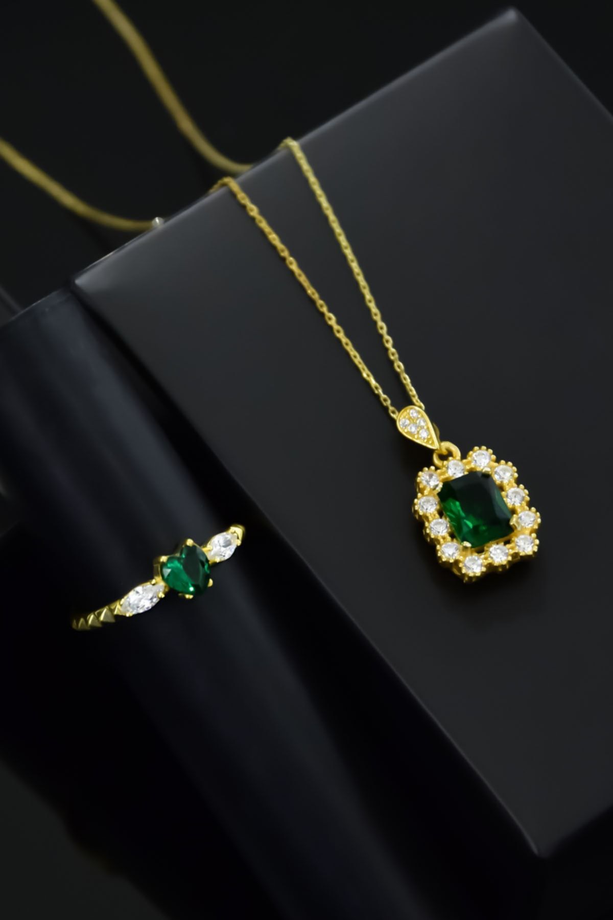 | Etiketler | 925 Ayar Gümüş Gold Kaplama Yeşim Renkli Taş Tepelikli Kare Tasarım Kolye Ve Kalp Yüzük Set |