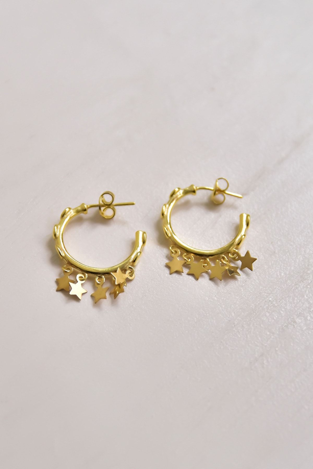 Etiketler925 Ayar Gümüş Gold Kaplama Yıldız Pullu Sallantılı Shakira Tasarım Halka Küpe