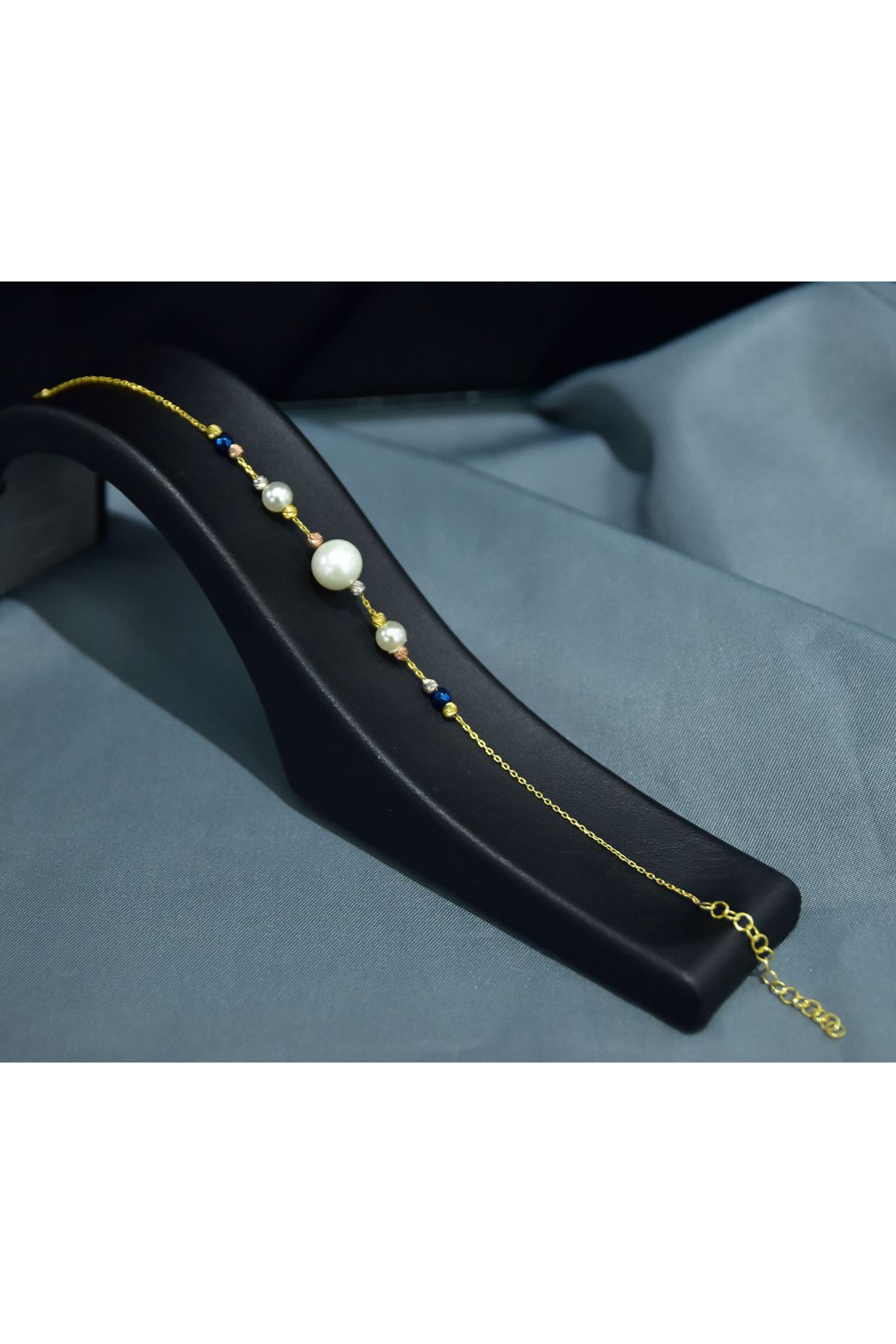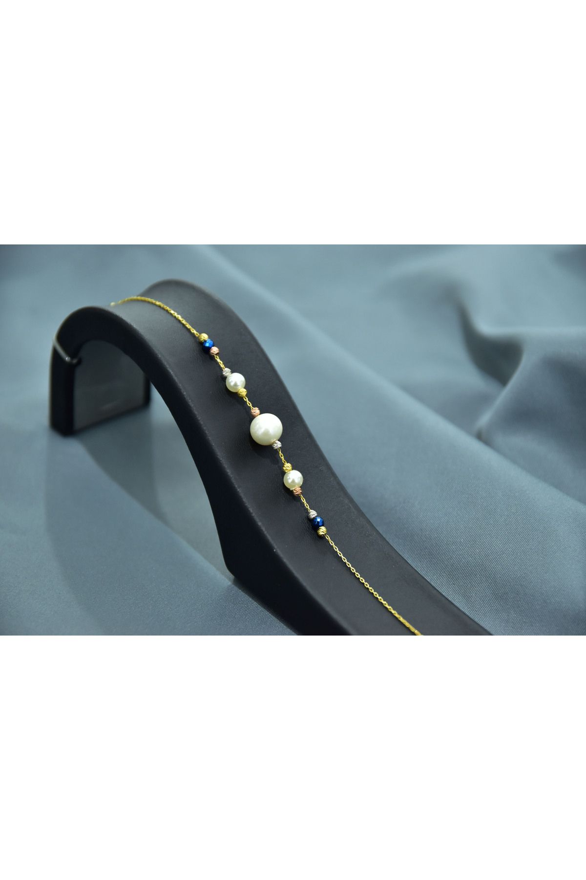 925 Ayar Gümüş Gold Kaplama Zarif Incili, Dört Renk Dorika Toplu Bileklik