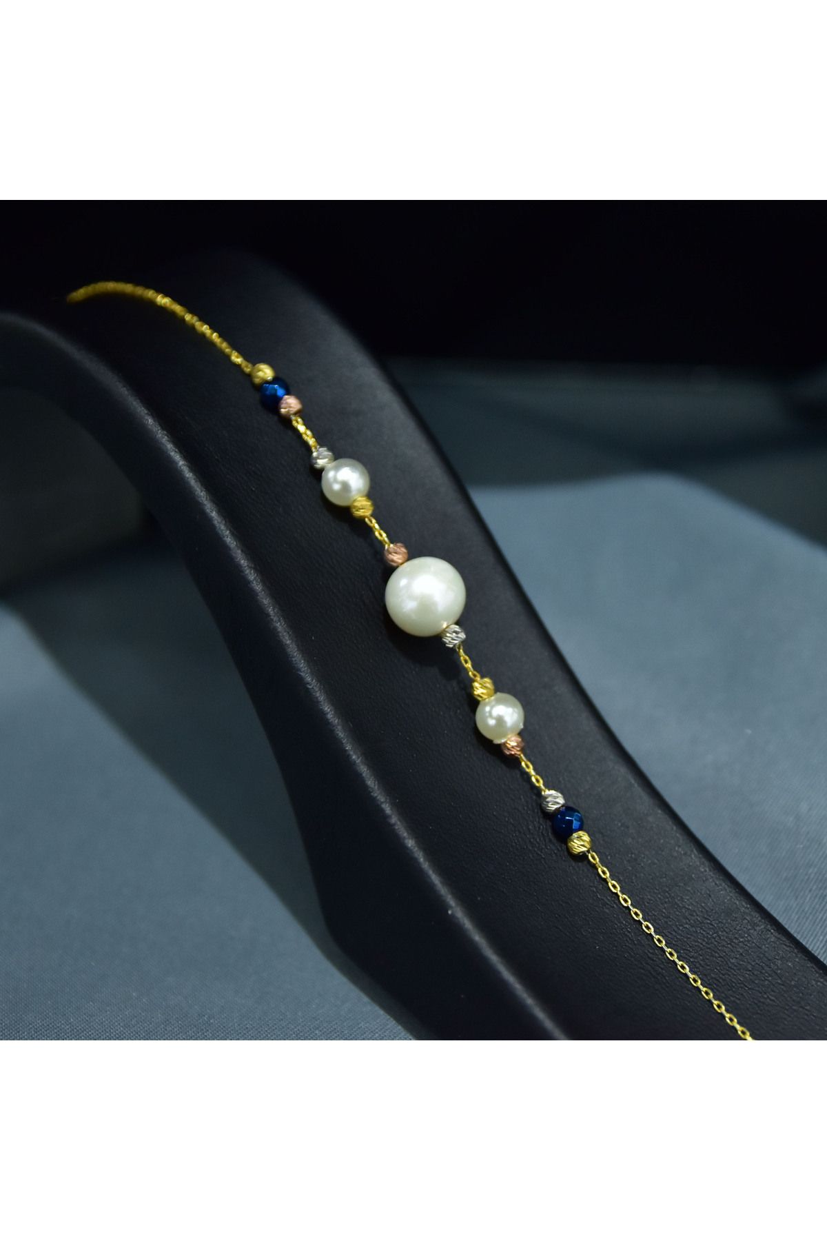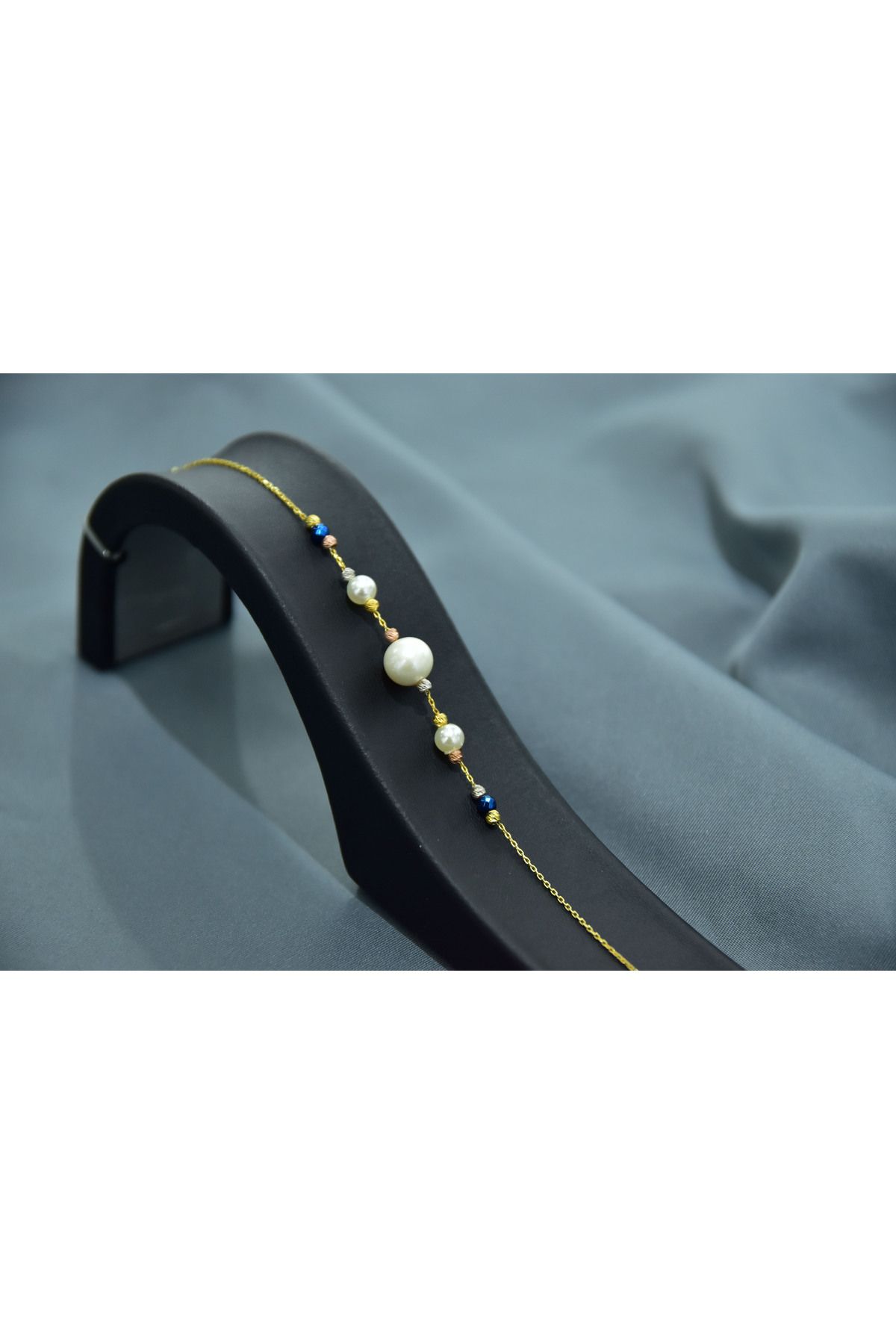 Etiketler925 Ayar Gümüş Gold Kaplama Zarif Incili, Dört Renk Dorika Toplu Bileklik
