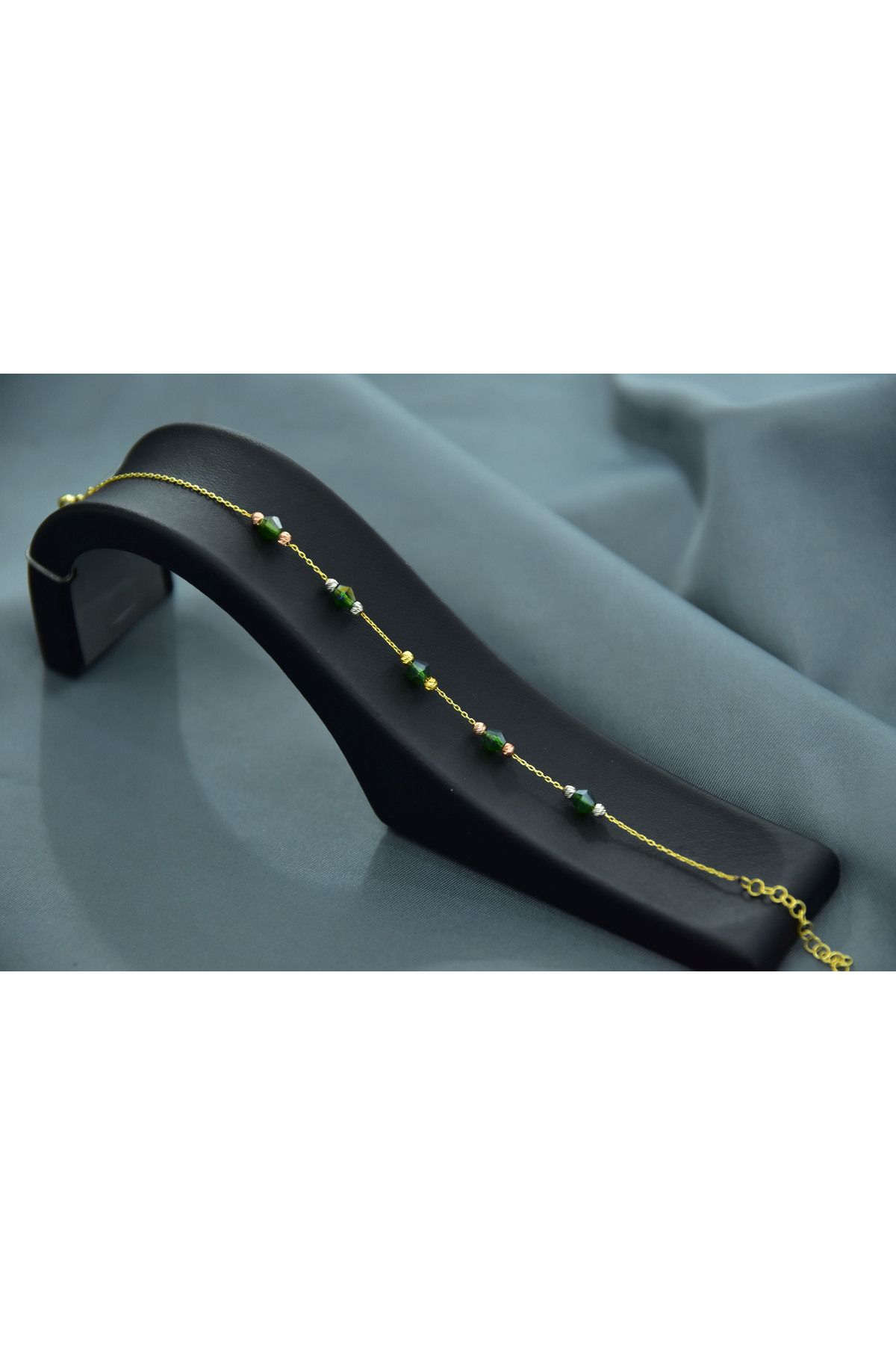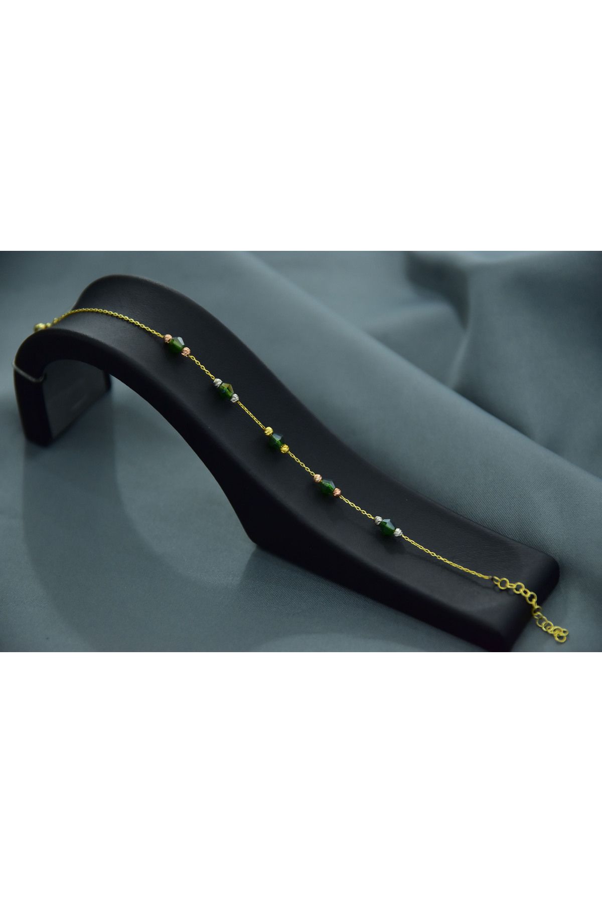 925 Ayar Gümüş Gold Kaplama Zarif Yeşil Renk Boncuklu, Dorika Toplu Bileklik