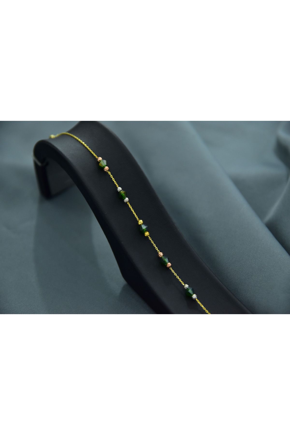 Etiketler925 Ayar Gümüş Gold Kaplama Zarif Yeşil Renk Boncuklu, Dorika Toplu Bileklik