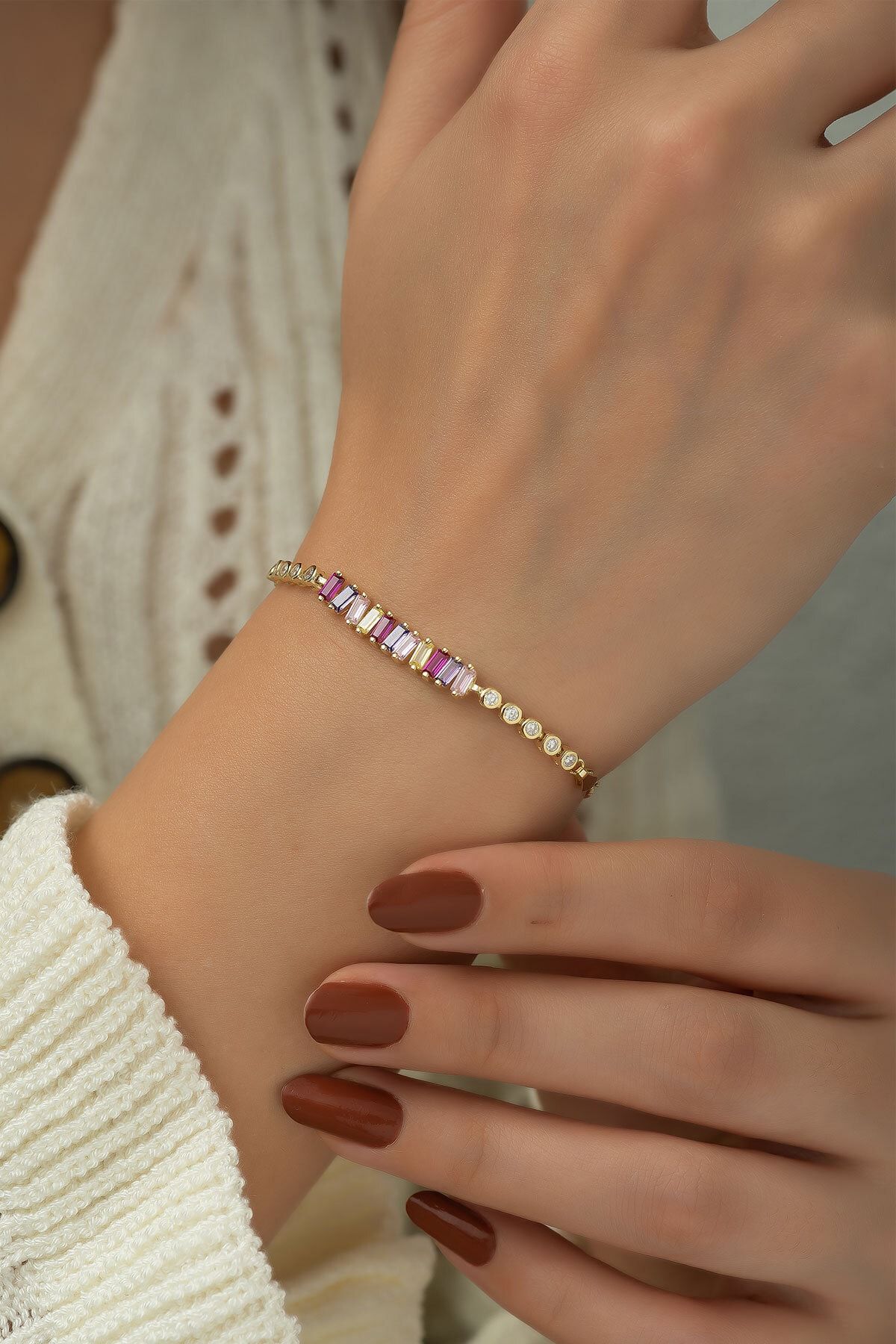Maden : 925 Ayar Gümüş. Kaplama: Gold . Taş: Zirkon. Ağırlık: 4,09 Gr. Zincir Uzunluk: 18 cm. Gümüş ve değerli taşlar nedeniyle belirtilen ortalama ürün ağırlığında ± %5 sapma olabilmektedir. Teslimat: Ürün ahşap hediye kutusunda gönderilecektir. Kullanım: Parfüm, dezenfektan, çamaşır suyu gibi kimyasallardan uzak tutunuz.