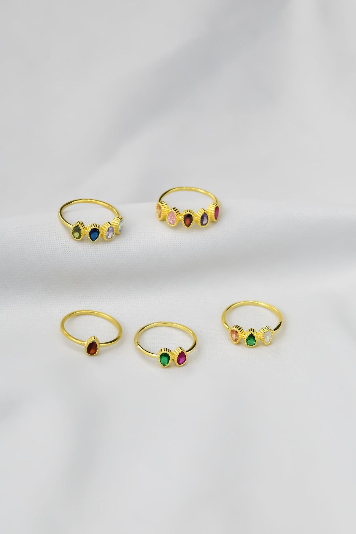 Etiketler925 Ayar Gümüş Gold Kaplama Zirkon Taşlı, Damla Doğum Taşlı Yüzük