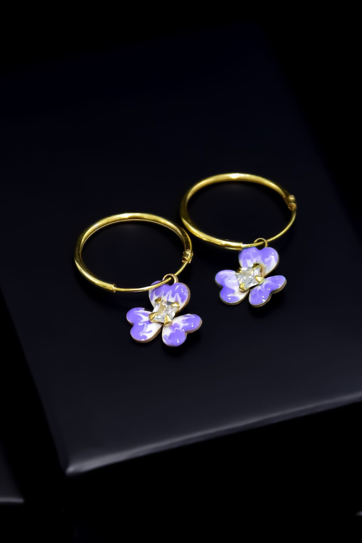 925 Ayar Gümüş. Kaplama: Gold. Ürün Ağırlığı : 1,32 Gr. ( +-). Taş: Zirkon. Yüzey: Mine. En*Boy: 1 cm. Halka Çapı: 1,5 cm. Gümüş ve değerli taşlar nedeniyle belirtilen ortalama ürün ağırlığında ± %5 sapma olabilmektedir. Teslimat: Ürün ahşap hediye kutusunda gönderilecektir. Kullanım: Parfüm, dezenfektan, çamaşır suyu gibi kimyasallardan uzak tutunuz.