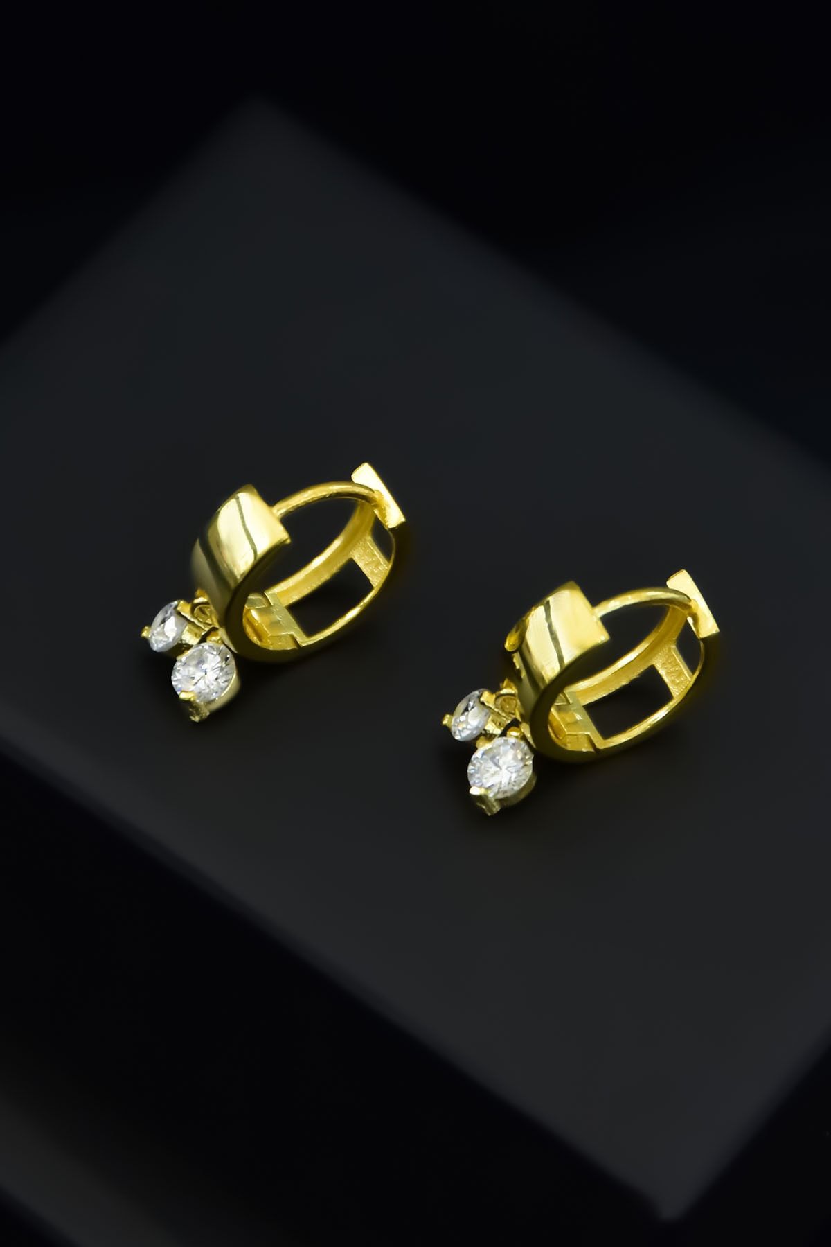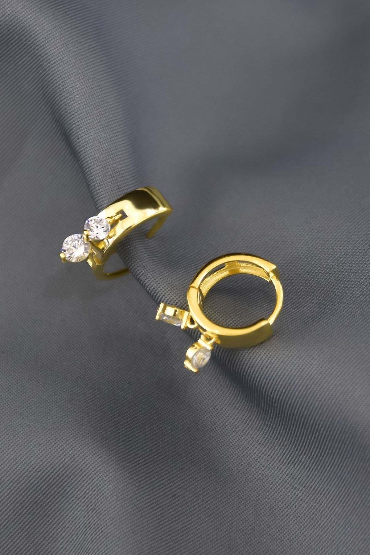 925 Ayar Gümüş Gold Kaplama Zirkon Taşlı Sallantılı Halka Küpe