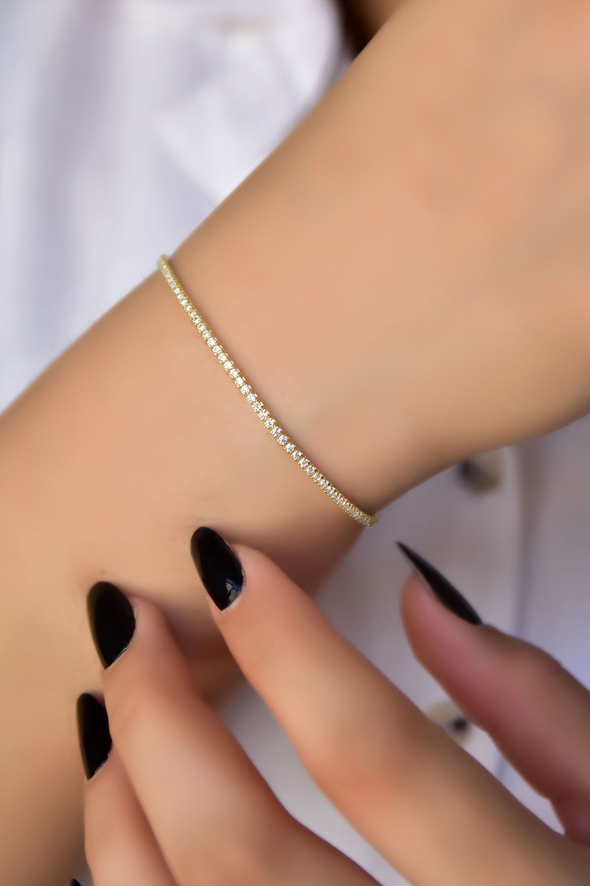Maden : 925 Ayar Gümüş. Kaplama: Gold. Zincir Uzunluğu: 15+3 cm. Ağırlık: 2,4 Gr. Gümüş ve değerli taşlar nedeniyle belirtilen ortalama ürün ağırlığında ± %5 sapma olabilmektedir. Teslimat: Ürün ahşap hediye kutusunda gönderilecektir. Kullanım: Parfüm, dezenfektan, çamaşır suyu gibi kimyasallardan uzak tutunuz.
