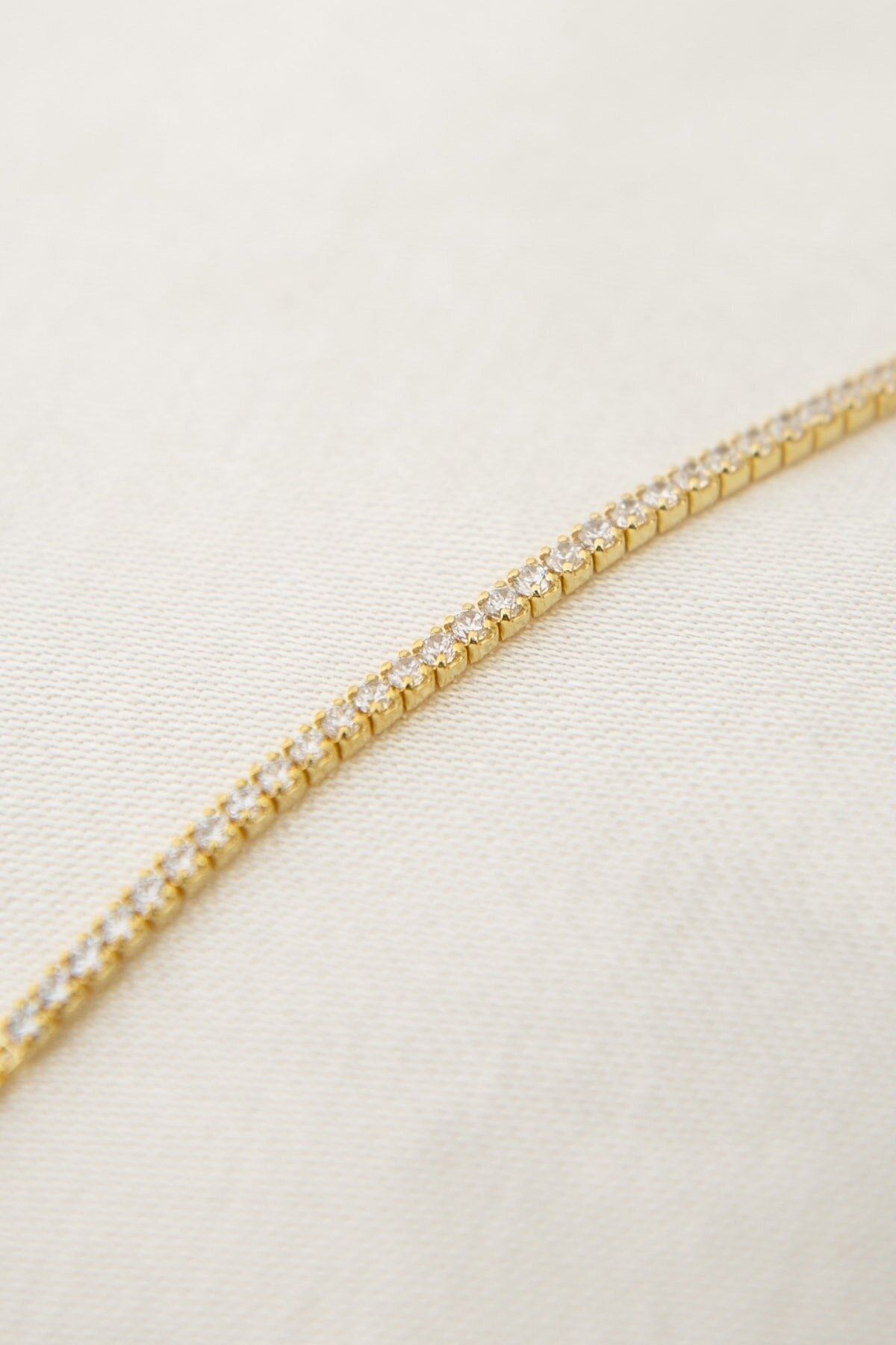 Maden : 925 Ayar Gümüş. Kaplama: Gold. Zincir Uzunluğu: 18 cm. Taş: Zirkon. Gümüş ve değerli taşlar nedeniyle belirtilen ortalama ürün ağırlığında ± %5 sapma olabilmektedir. Teslimat: Ürün ahşap hediye kutusunda gönderilecektir. Kullanım: Parfüm, dezenfektan, çamaşır suyu gibi kimyasallardan uzak tutunuz.