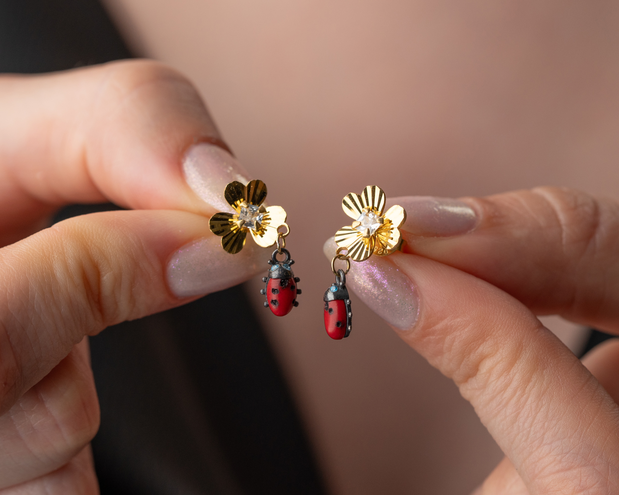 925 Ayar Gümüş Gold Kaplama Kalemli Zirkon Pembe Taşlı Frezya Çiçeği Küpe