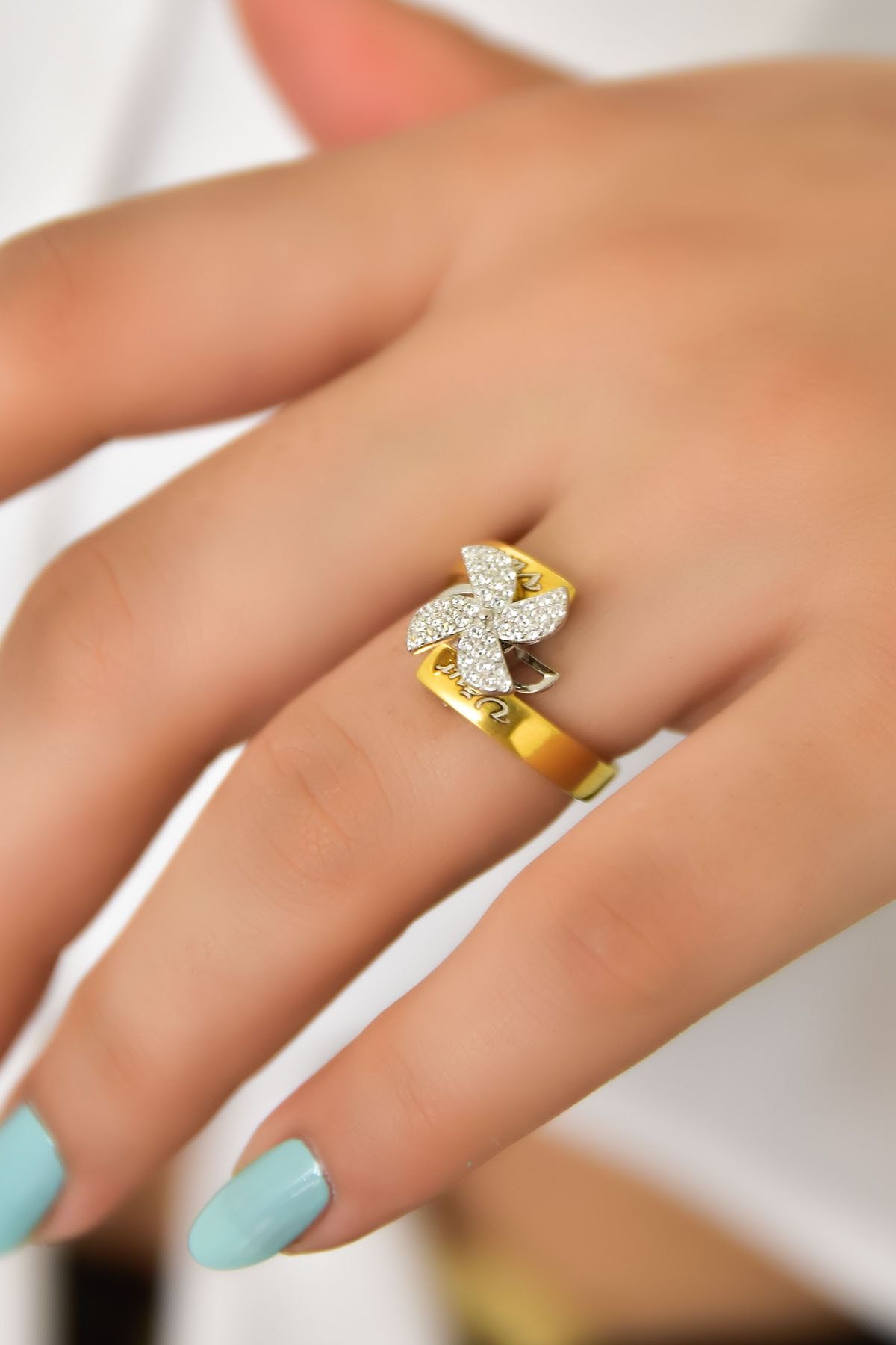 Etiketler925 Ayar Gümüş Gold Rodyum Kaplama Isimli Zirkon Taşlı Dönen Pervane Yüzük