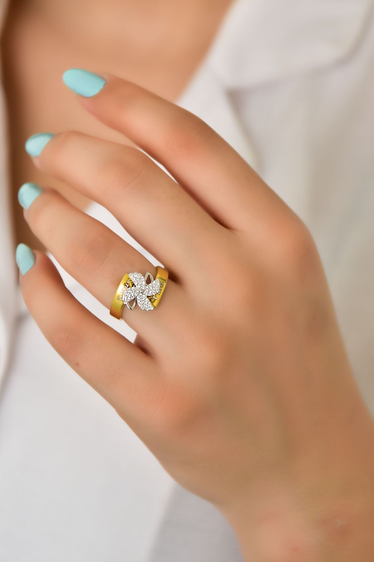 Etiketler925 Ayar Gümüş Gold Rodyum Kaplama Isimli Zirkon Taşlı Dönen Pervane Yüzük