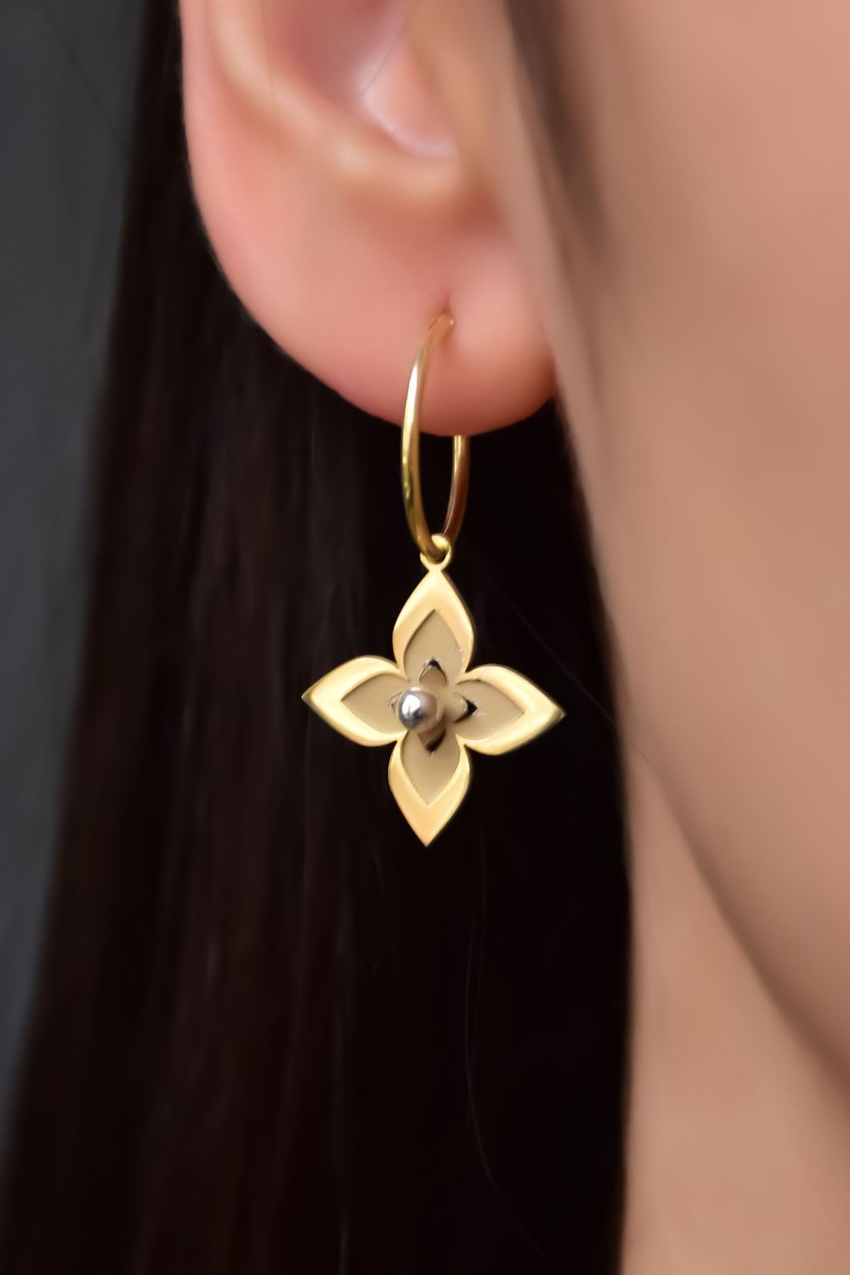 Maden Ayar: 925 Ayar Gümüş.Maden Kaplama: Gold-Rodyum. Ağırlık: 1,93 (-+). Çap: 1,5 cm. En*Boy:1,9 cm. Teslimat: Ürün kutu ile gönderilecektir. ''Gümüş ürünlerin yapısı gereği kararmalar meydana gelebilir daha uzun ömürlü olması için Parfüm gibi kozmetik ürünlere direkt temas etmediği sürece ürün ömrü daha uzun olacaktır.''